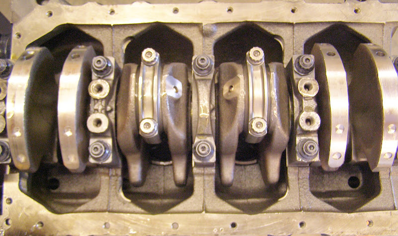 Balanced crank, balanced Belfab H-beam rods, ARP main and rod cap studs.