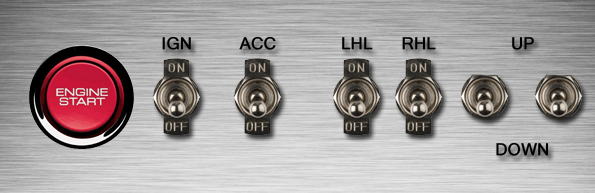 there will be two ON-OFF switches to control Ignition and Accessories, one Push to start, and two ON-OFF-ON switches to control the windows. plus one ON-OFF-ON to contorl the pop-up lights.