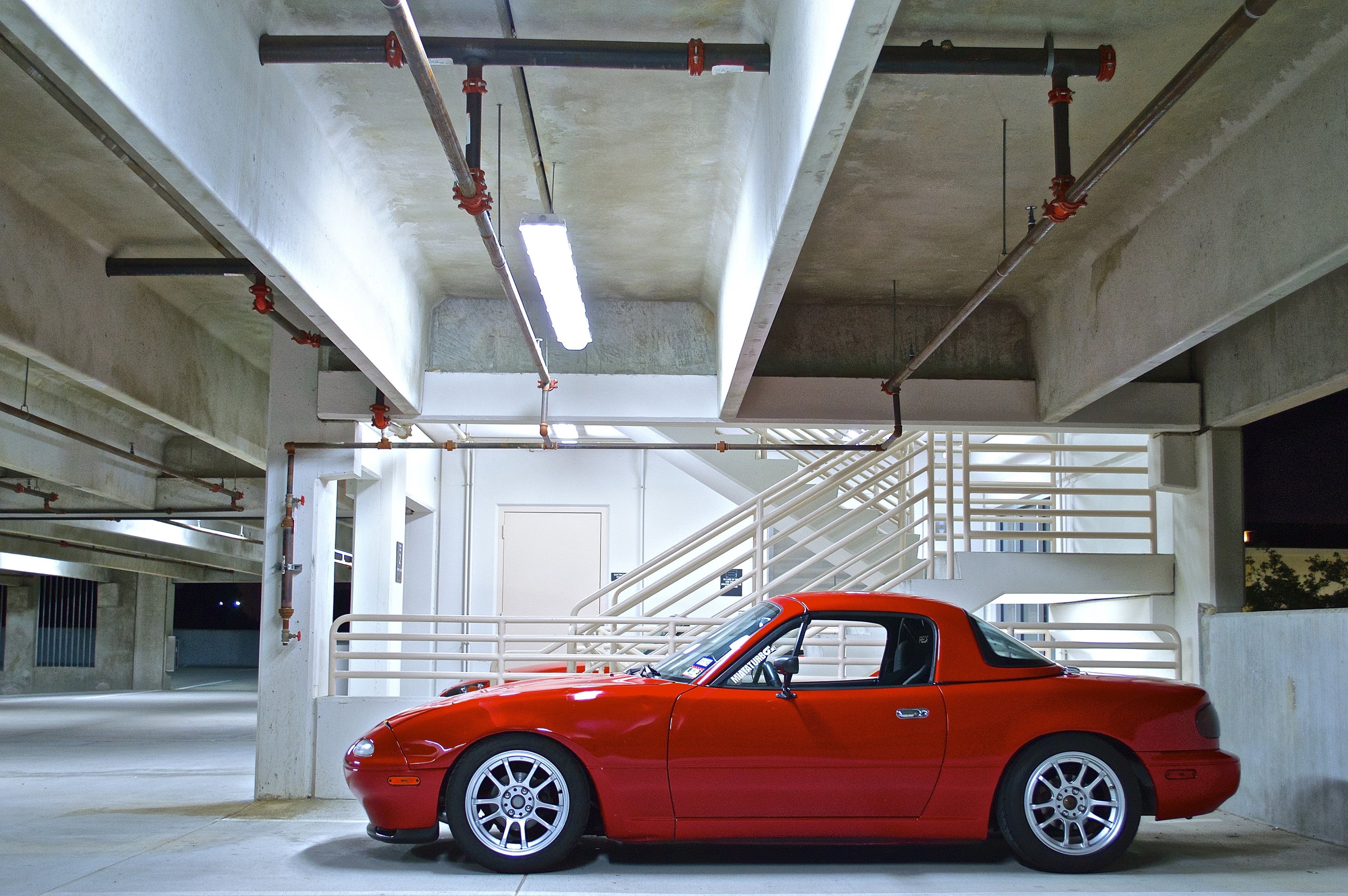 Losing interest in my Miata and am thinking about selling this thing. I know I'm not going to get back all the money I've put into it, but I have put cash and time into it that I would like to partially recoupe. Car is fully assembled and driven on weekends only (too hot to drive to work + the losing interest thing). Mods are as follows. What would be a reasonable price to start it out at?