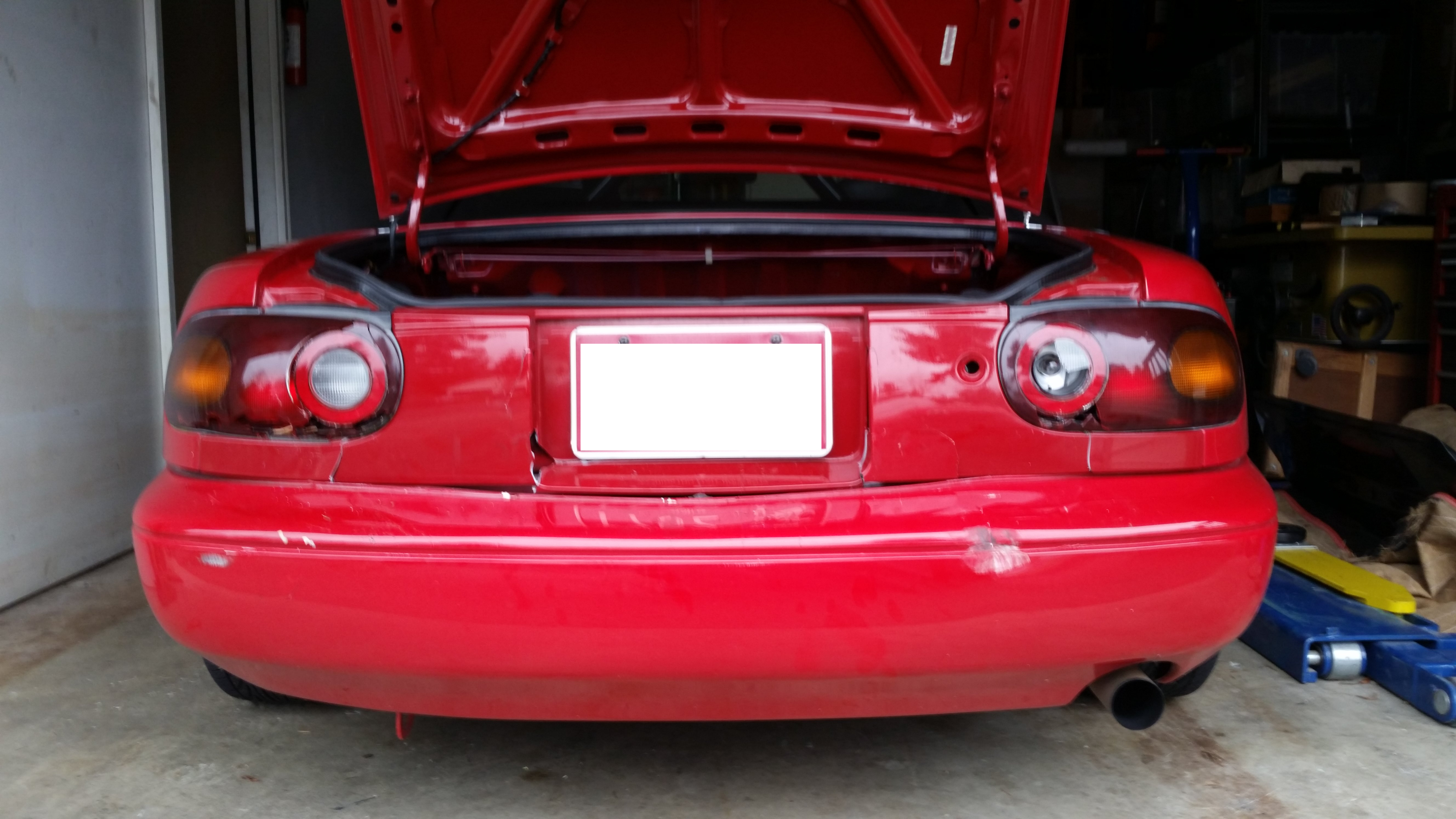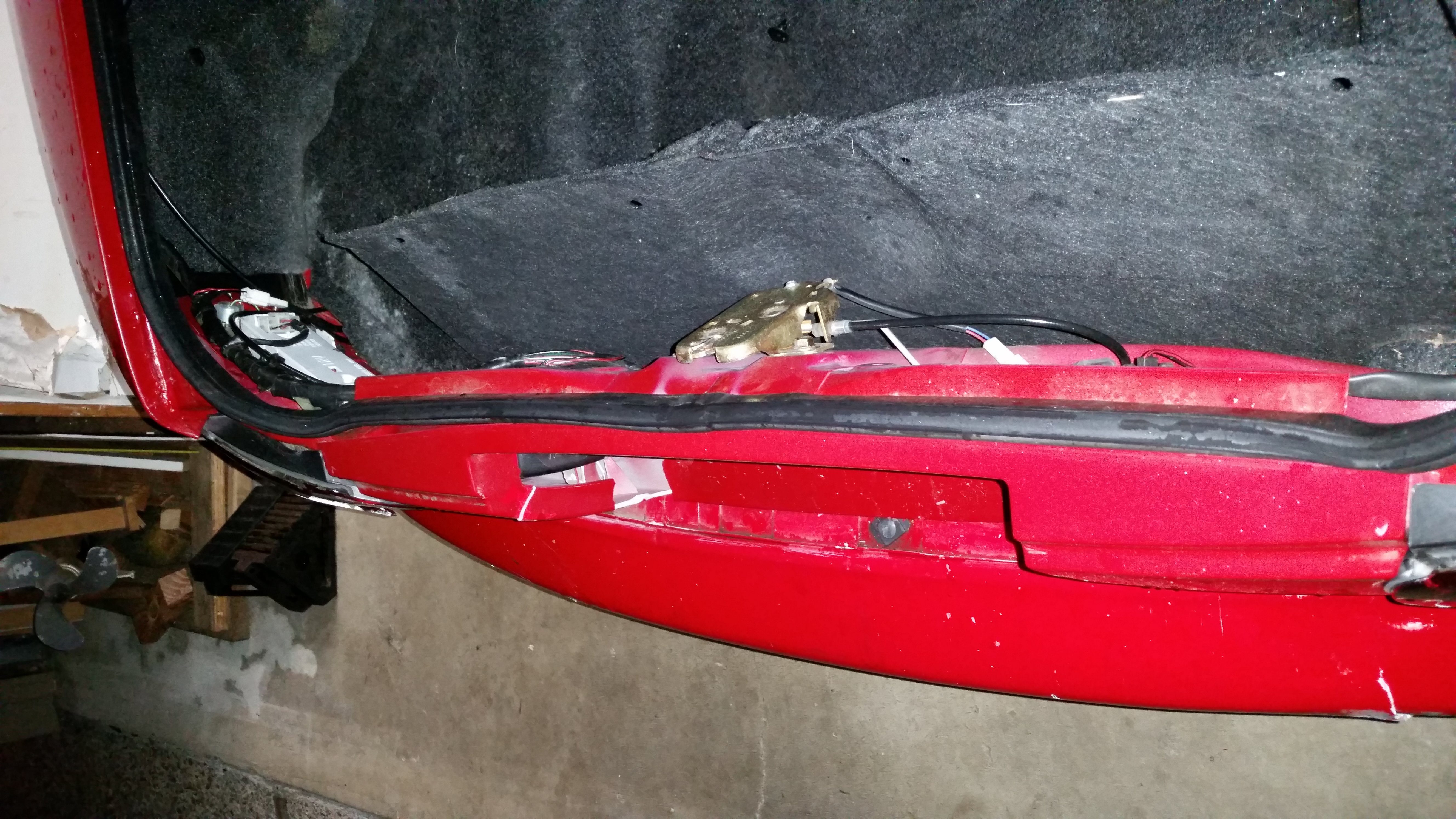 My '96 was rear ended by an SUV last night while stopped at a traffic light. Because of the difference in the height of the vehicles, the license plate area took the brunt of the impact. The body of the car just below the trunk is now bent inwards enough that the trunk won't even close (the trunk is also a little bent too). I'm a little heartbroken since this car has been a constant project for the last few years and only has 95,000 miles on it. I can't imagine this is going to be repairable but I can't get it assessed until Monday at the earliest.