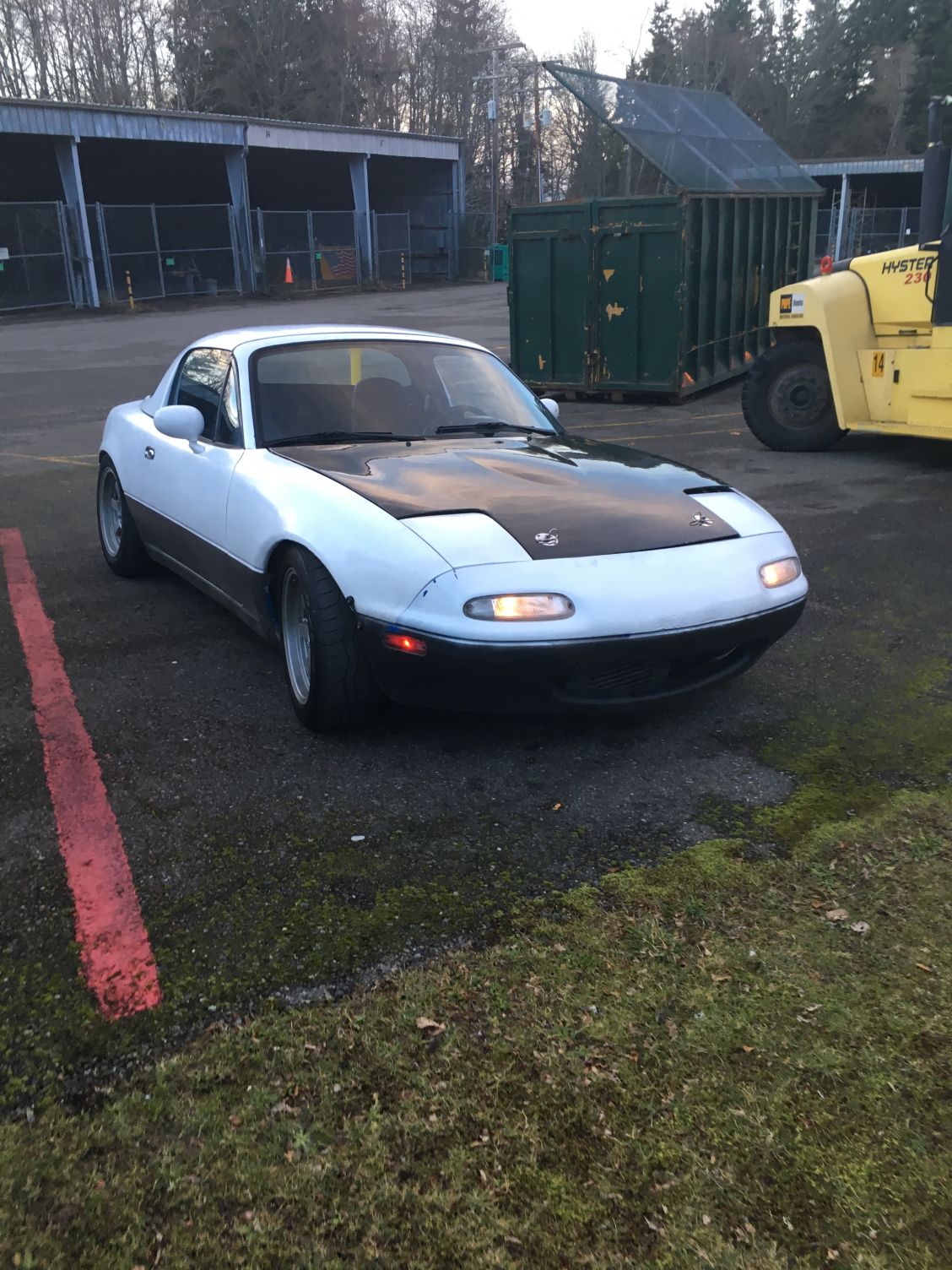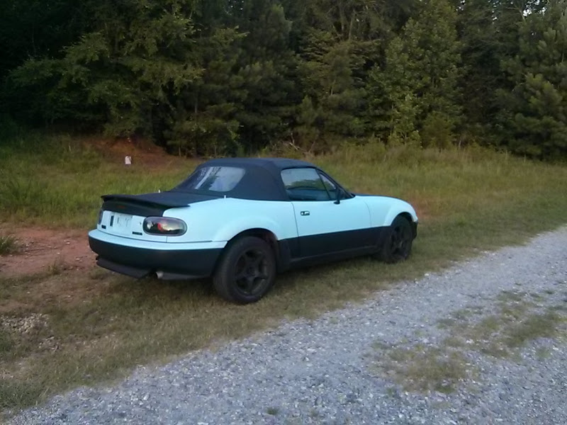 Your colorscheme is nearly identical to my brothers miata - minus the crap body kit. But hey, $800 automatic miata with a bad transmission is $800 (and we had a 5 speed laying around). I think his paint is Krylon Fusion blue.