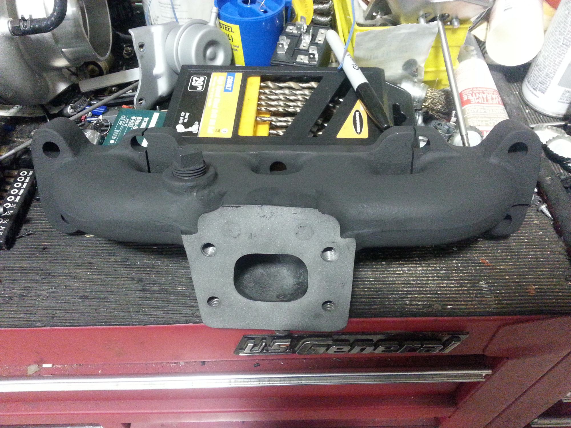 This was a manifold that came with a T25 turbo "kit" that included a FM ic... can anyone ID what it is? Early FM?? It had obviously had a couple flange bolt holes filled... just having trouble IDing it. Thought/thinking of using it on the Eliminator if good enough quality (no taco taco).