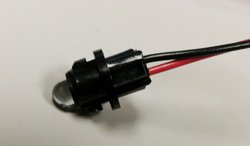 I found a super-bright LED that fit into a drilled-out bulb holder, and replaced the seatbelt light. I used the 6101 LED for the red shift light. I needed to solder a current limiting resistor in series, but the LED was much brighter than the incandescent bulbs.