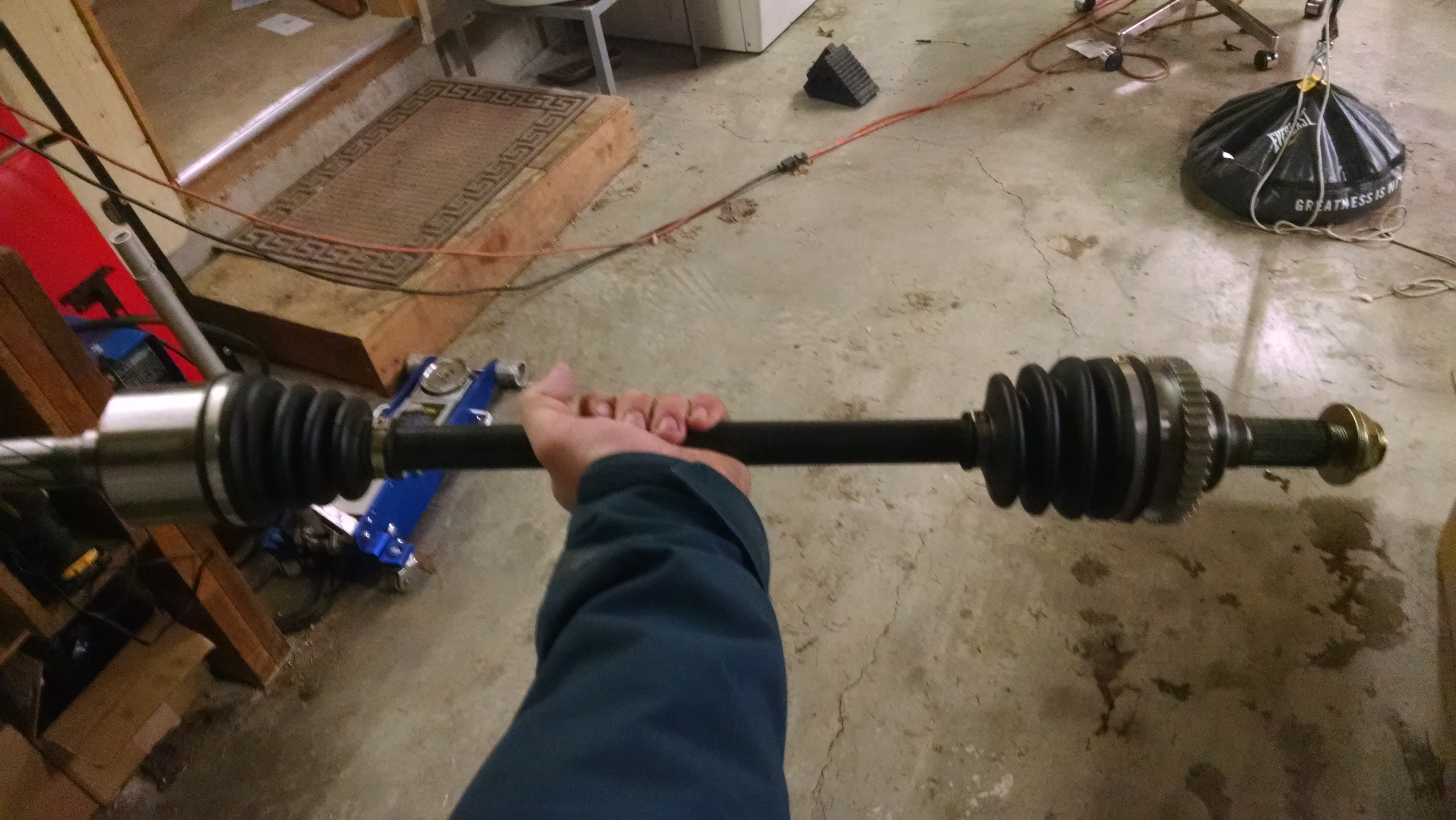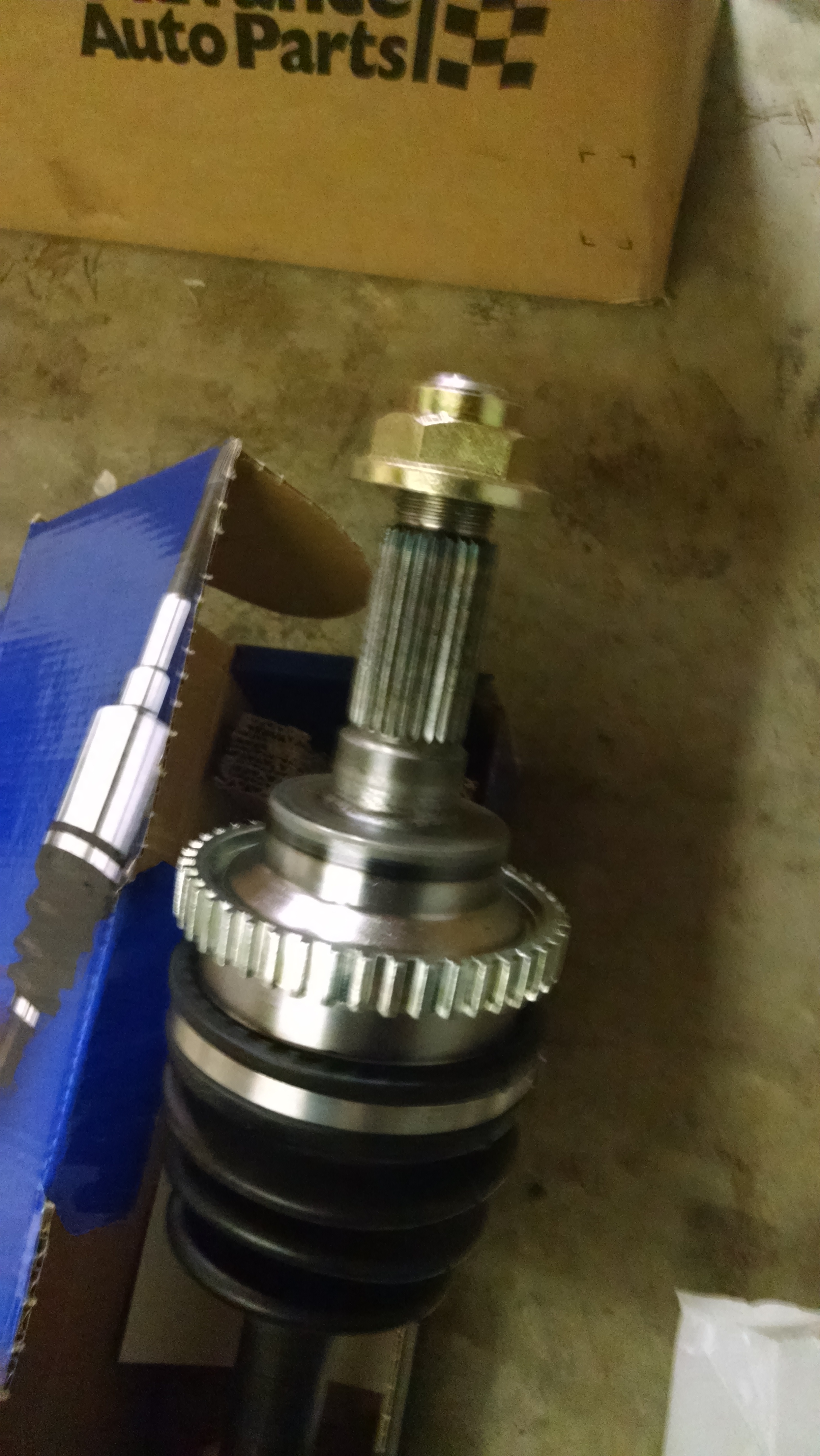 That is a standard Miata inner CV joint & axle on the top, MSM on the bottom. On the CV joint, the seal area is the same, everything past there to the splined end is a larger diameter on the MSM CV joint. As I recall, 28mm vs 30mm.