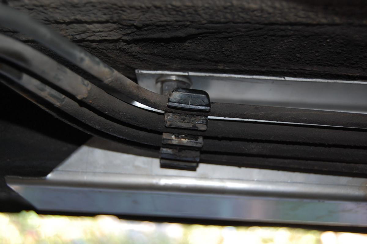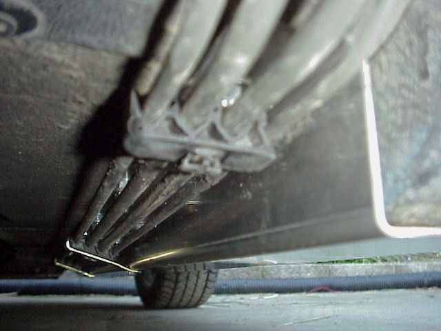 2. The fuel/vapor lines should be slid down in the foremost clip (base of firewall) to give you a little less tension and more clearance at the leading edge of the rail. Then the front clip should be flipped and placed as to protect the lines from the foremost rail bolt. See other pic.
