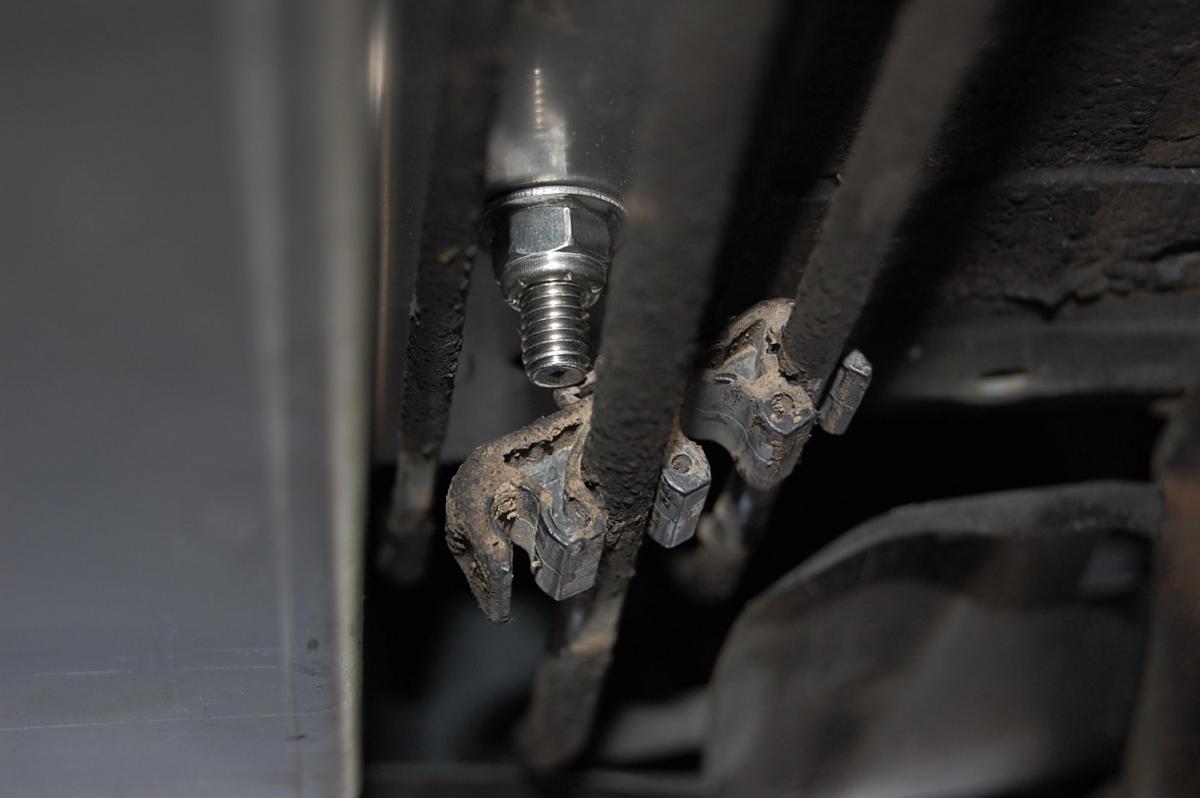 5. If your stock frame rails are damaged you may require some leverage in adjusting them. My stock rails did not appear to have any need for adjustment until I attempted to slip the new rail over them. Adjusters pictured (see pic).