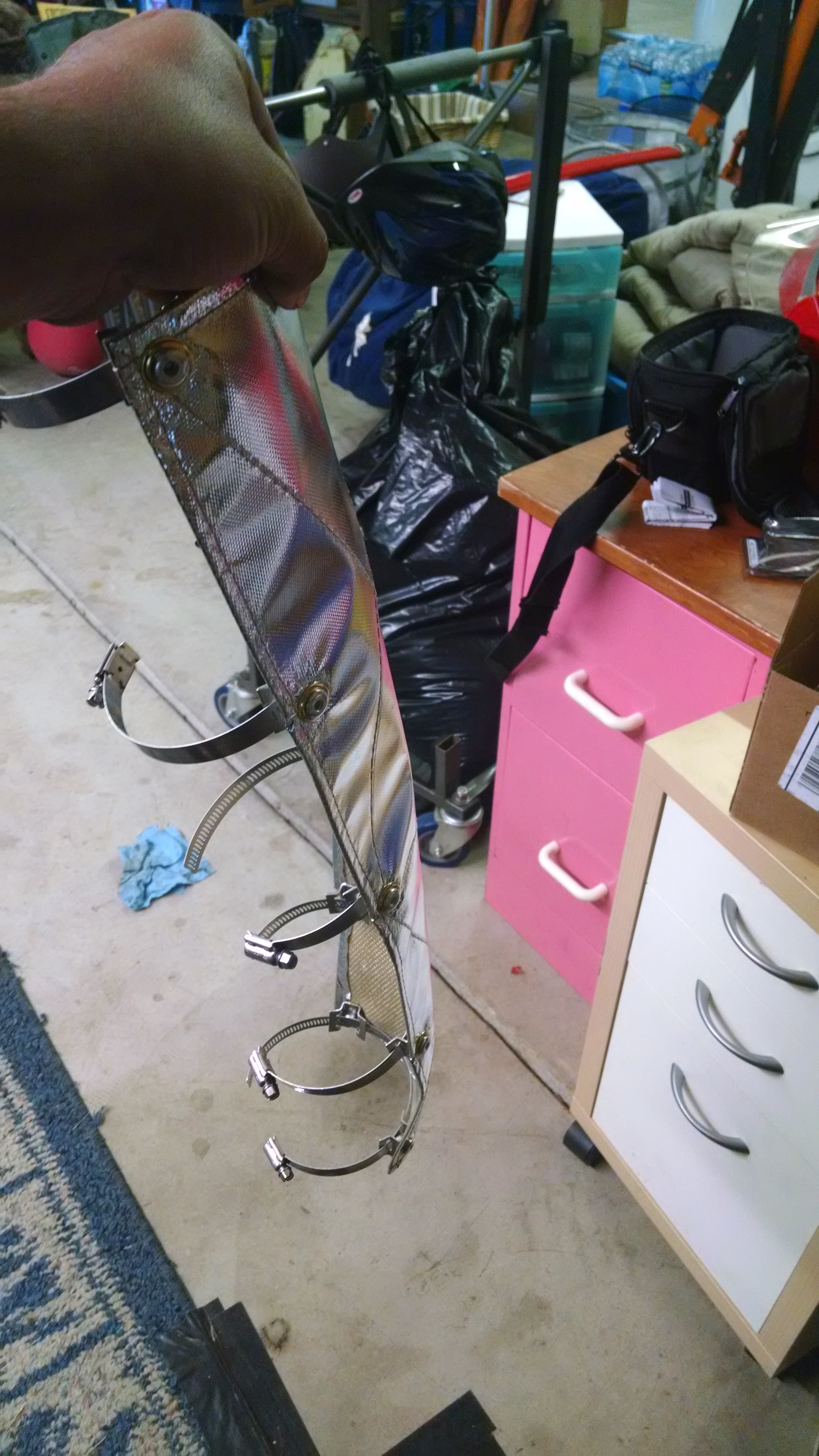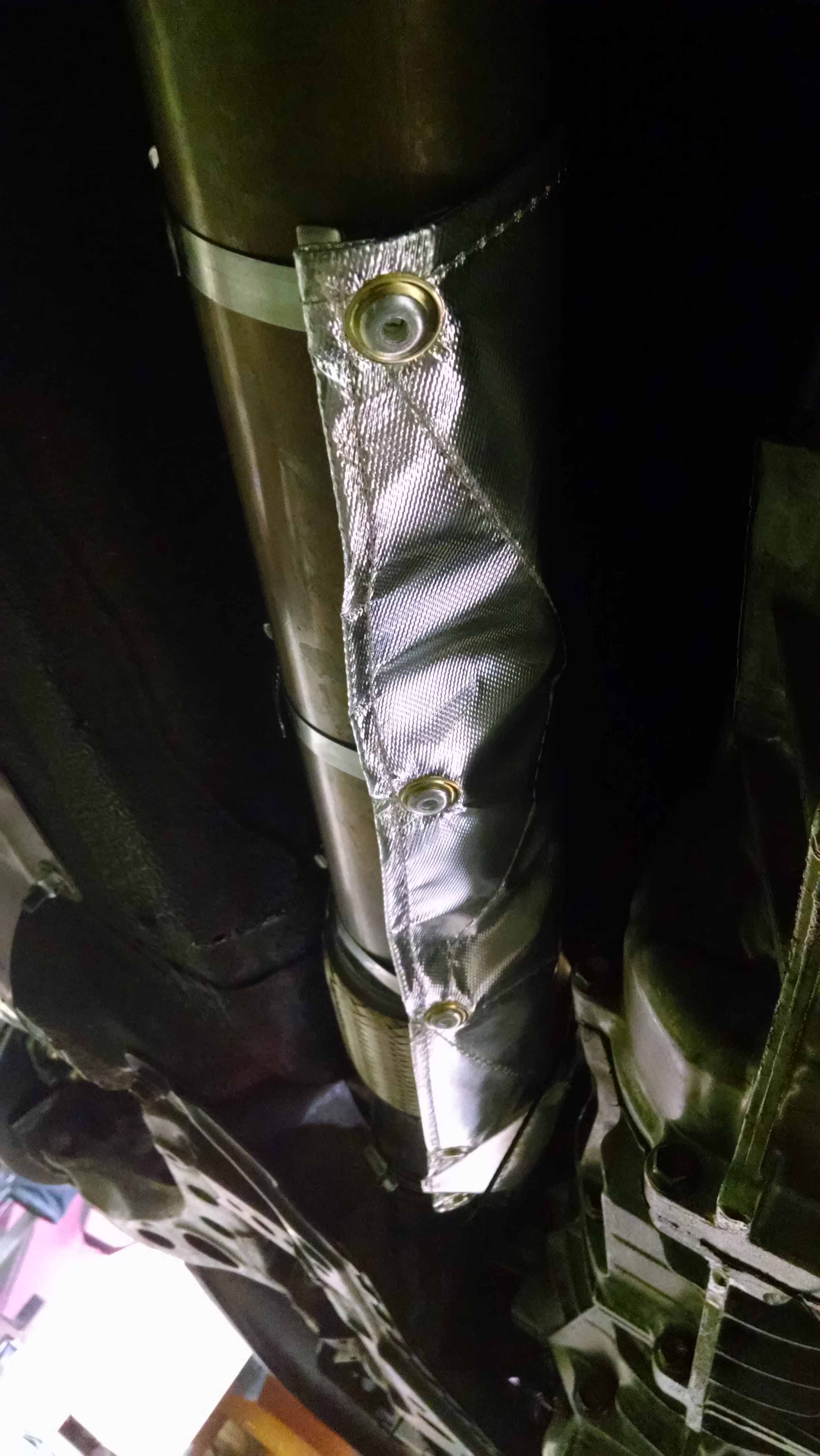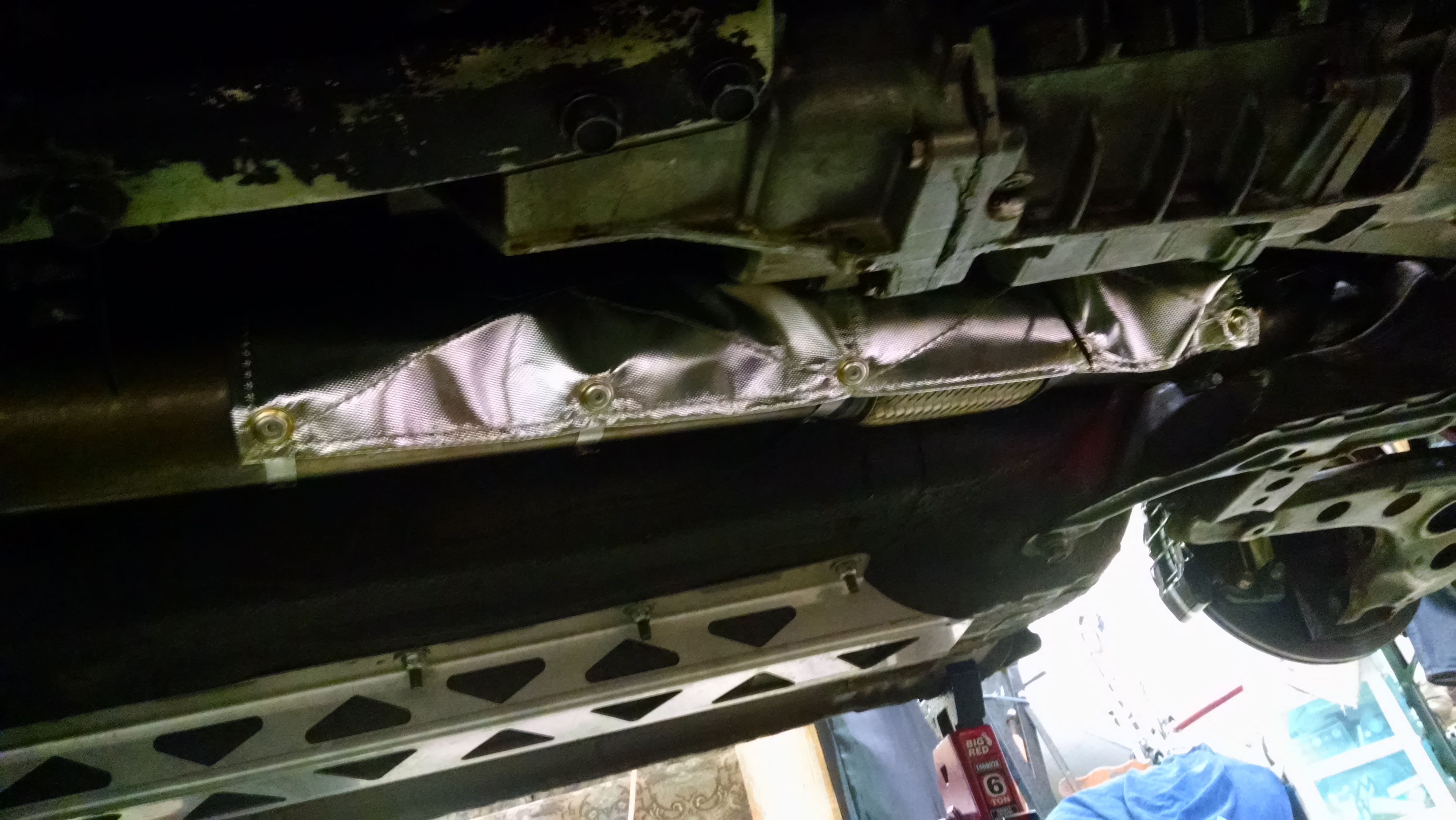 When I upgrade my transmission I will replace the hodgepodge of metal shields I am using with one nice piece I found. There's good shielding available in the junkyards that the OEMs paid nice money for already. Don't spend too much. Trucks and vans often have 2.5 and 3 inch exhaust pipes that required shields at some point in their length. And cars have nice dual layer shields attached to the body and fuel tanks. Some of them are quite large and can be sized to fit.
