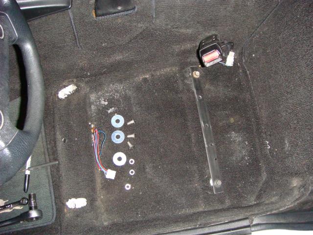 After finishing the seat, I decided to re-lower the steering column. My father owned the car previous to me and did the mod. It's just a couple of washers added to the steering column bolts under the dash. It looks like when he did the mod, he put the bolts back in with a 4ft cheater bar... cause I snapped one off removing it and the washers were all crushed practically in half. The passenger side bolt is holding the column up, but it's just as rigid, so I think it'll be fine. In any case, I hesitate to think what a huge *** pain it will be to fix the bolt. I'm pretty sure the steering column bracket that this bolt is stuck in is an integral part of the dash... anybody know what I'm talking about?