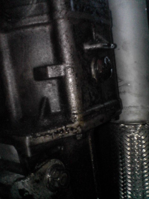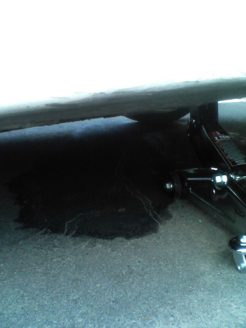 Well.. I installed my valve cover.. as seen in my crappy camera phone pictures taken. Today, I noticed I have a leak. Not just a small one either, as you can see by the size of the puddle. I included 2 pictures.. one from the passenger side, with the car jacked up... and the other of my transmission plug.. which has like 2 drops of oil just hangin off it.