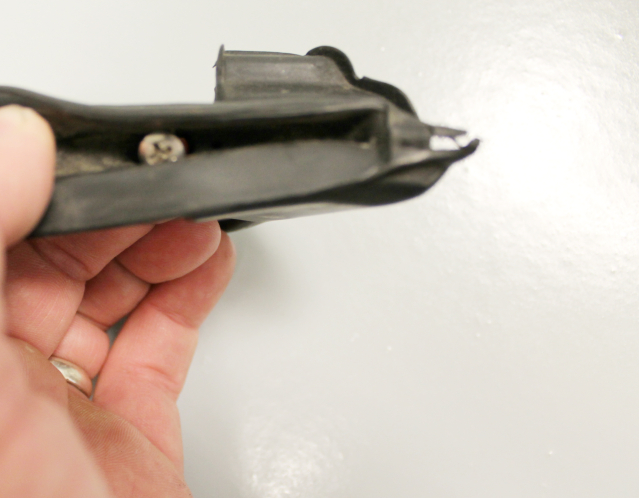 Just inside the little triangle part, the seal screws into the window frame.