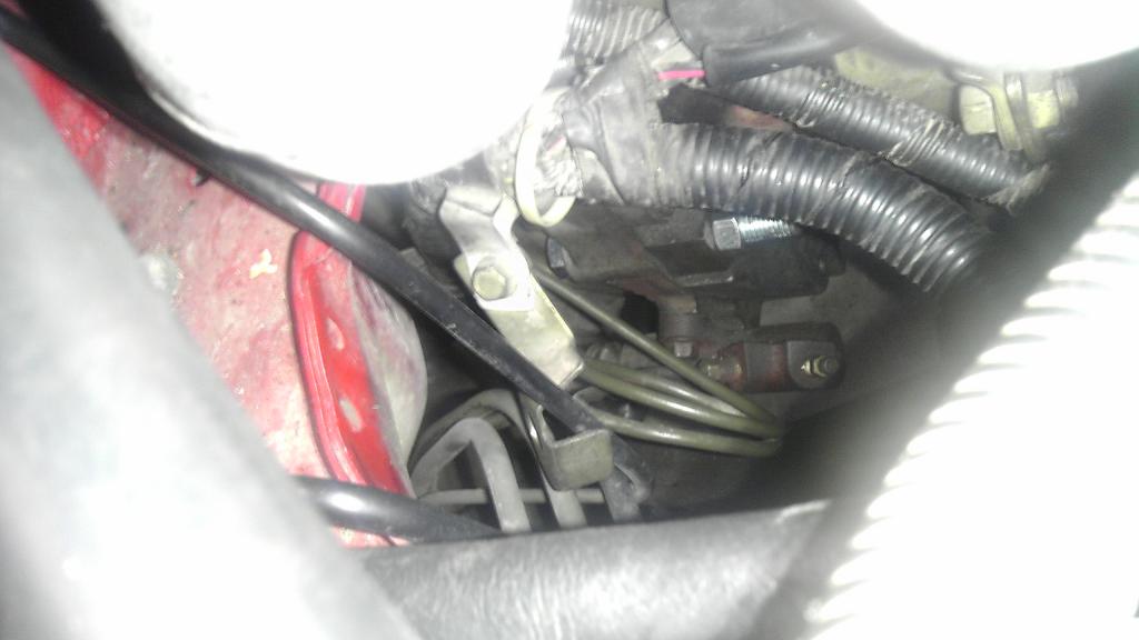 Yes the clutch hardline. The bracket in the first photo goes on the transmission bolt, the brand new one (that's way too long btw) pictured right behind the wiring harness.