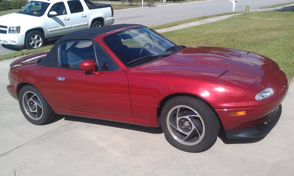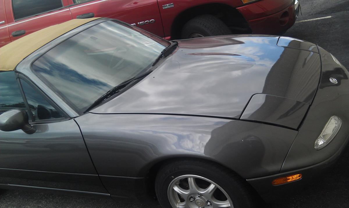 Make sure you ask them to tape the whole engine compartment and lights if you have an NA, I would also recommend that they remove the headlight covers after sanding so they paint all the way around them. I added the spoiler to my car and had much better results when they painted the spoiler off of the car. Put on your ugliest set of wheels too. If you have a plastic top window cover it with cellophane or something to protect it. They scratched the **** out of my almost brand new window when they did the final cleaning. Cover up your CD player or tape over the disk opening. I did not have any dust issues on the wife’s 97 but I am still finding dust in my 91 months later, wish I had pics of the interior before I picked it up. Pull the door handles and belt line molding, unless your car is newer, you might as well get new belt line moldings. I have Panicmotorsports around the corner and he had some pretty good looking NB moldings for cheap, they are pretty pricey new. I used some lifting tape around the windshield with good results, its like $30 a roll, but worth it if you don’t need a new windshield. I wish I had made some kind of cover for my shocks. I have revalved Bilsteins with coilovers and no boots and ended up with overspray on the shafts.
