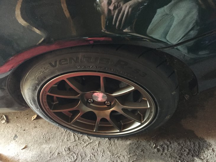 Picked up a set of 15x9 jongbloed or whatever from Flyin' Miata on the super-cheap due to them coming in like 0.002lbs over weight or whatever.