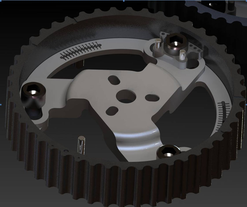 While the new cam gear is being machined I thought I'd leak a photo. We're thinking of changing all the gears over to this style. So if you wanted to switch heads to an NB you could do that easily enough and then just buy the timing add on. Fasteners are all titanium socket head cap screws. We'll see how it works out soon. Schmidt will be our tester.