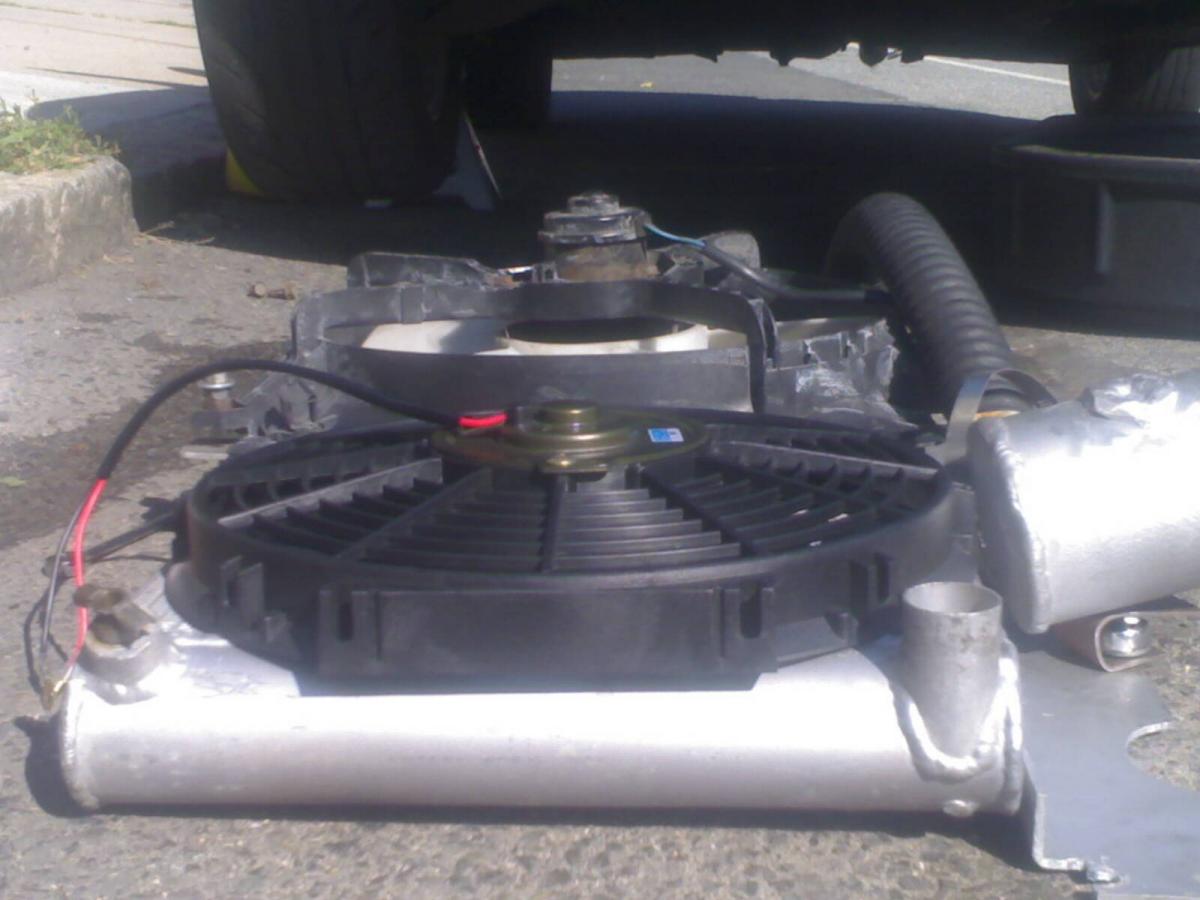 Second, two fans arranged on top of the rad (custom, one-off, that's why the remote reservoir)