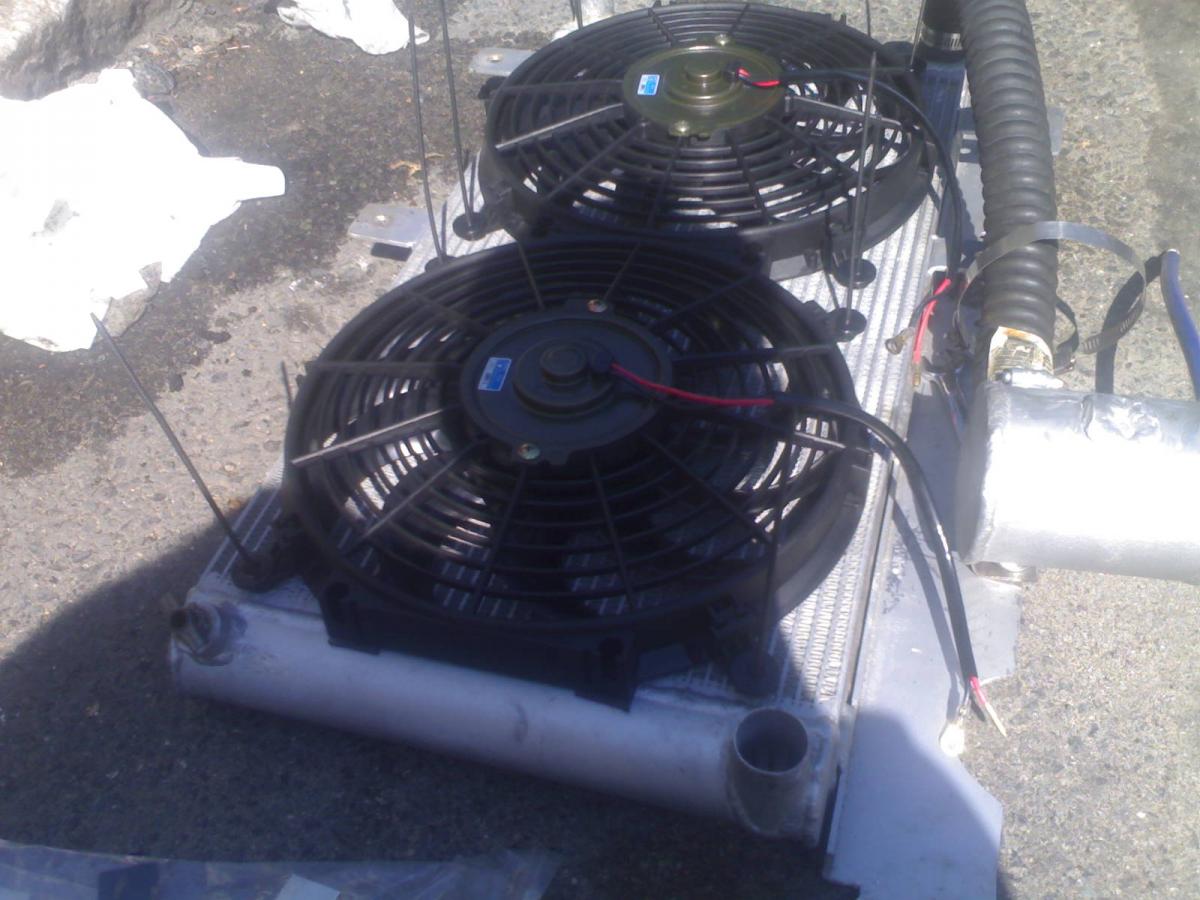 P.S. The reason I switched from single to dual (only one stock fan could be mounted on alum rad, so I had to put up with it after my stock rad blew up, literally) was because one fan was plenty for cooling, but not nearly enough to run A/C, P/S, and cool the car.