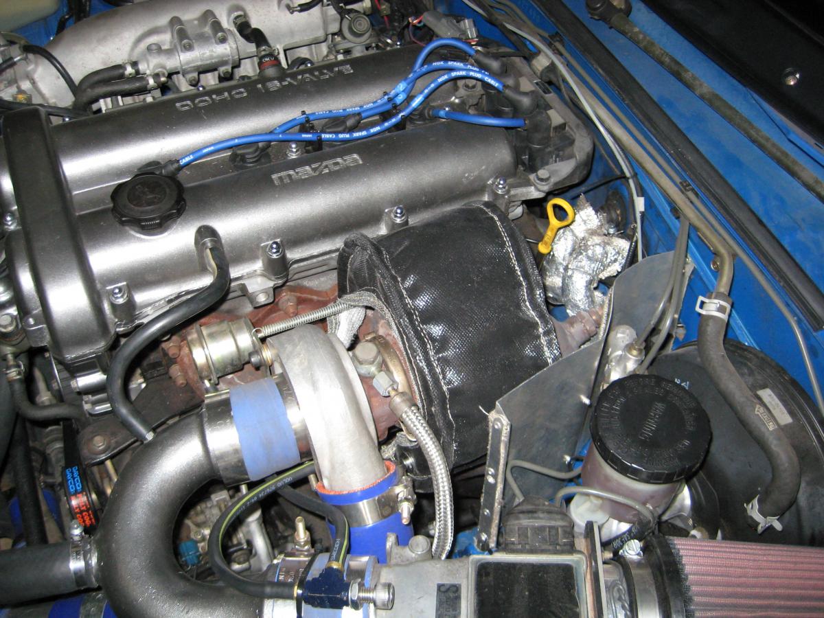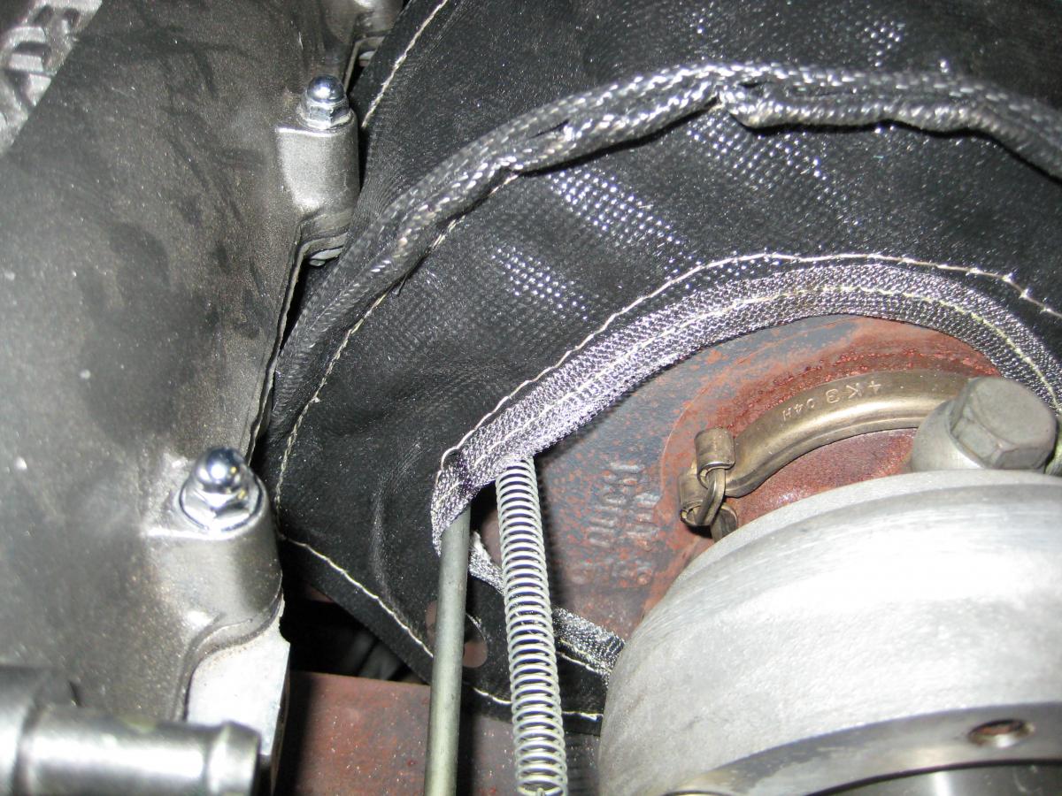 The turbo exhaust housing sits pretty close to the frame and I'm worried the thick turbo blanket may rub up against it and also the brake line.
