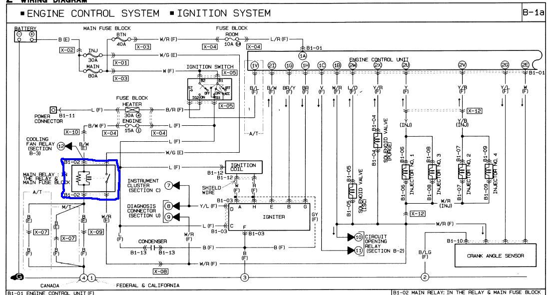 Wow...so many threads on Mnet about dying relays. Amazing. But what is the cause? I know when mine died earlier this year, I popped one in from Jenn's MSM (that has NEVER had a problem) and it still happened. That's what is telling me it is not the relay itself, but the 12v signal that operates the relay? Staring at the wiring diagram, I jsut can't make sense of the situation. If it's the source of the 12v signal to the relay, then it would kill power to the coils as well (and a/c)....meaning that the "jumper" fix wouldn't actually work and the car would still stall. But it didn't (not yeat at least). So that *should* eliminate the 12v source to the relay....meaning , to me, that the ground is suspect. After that, I'm stumped.