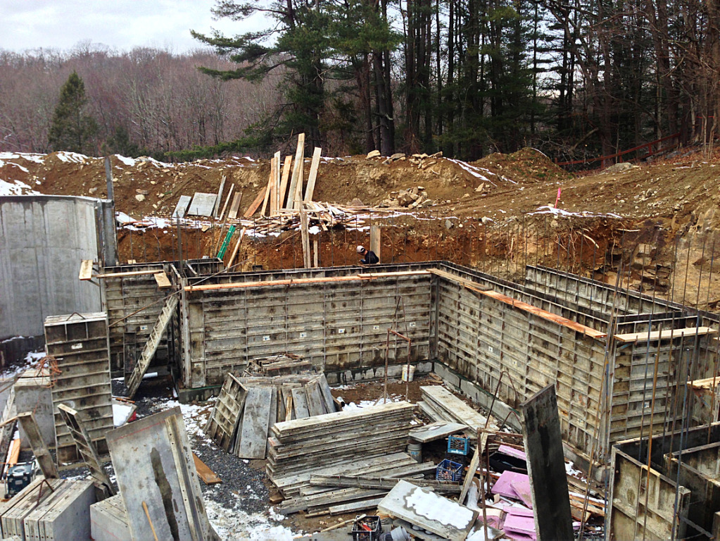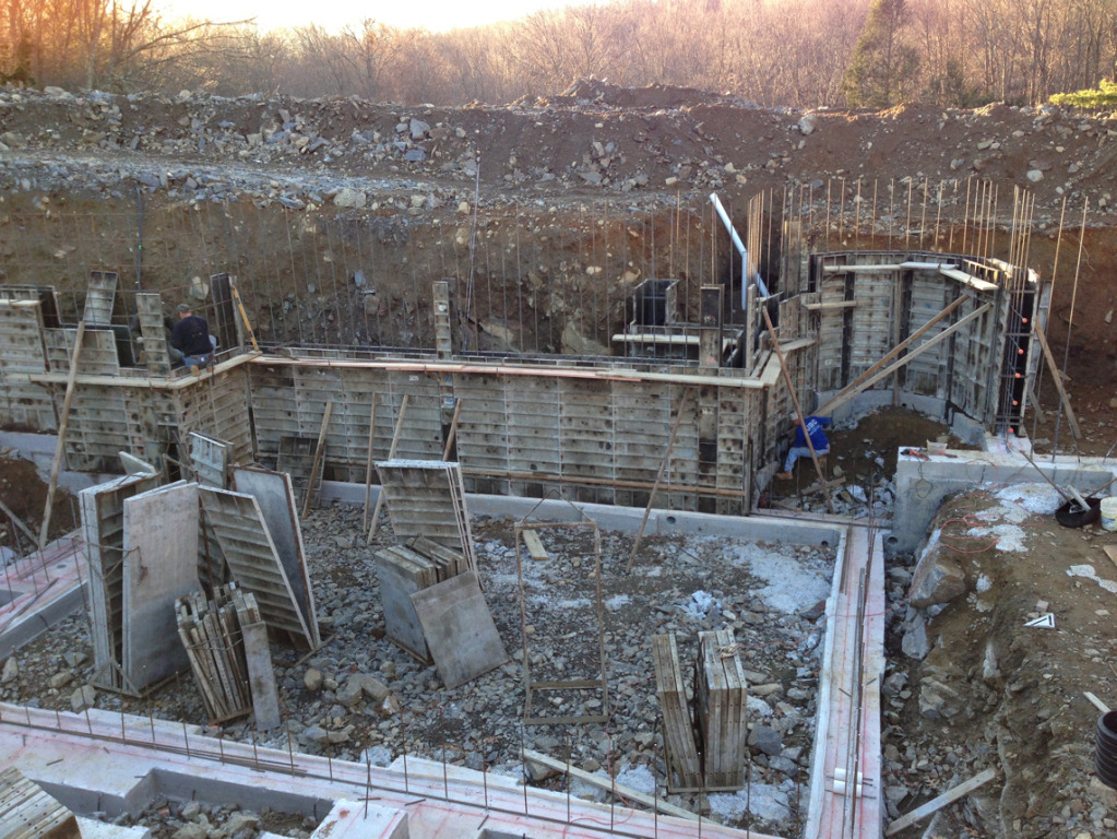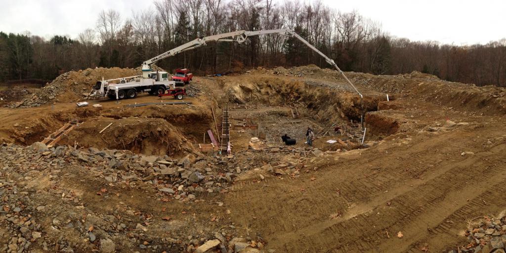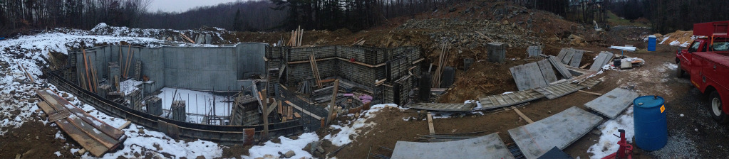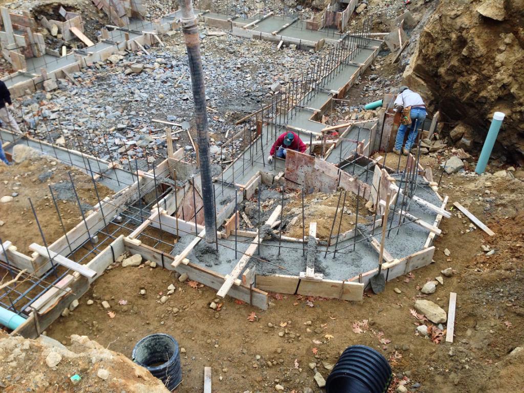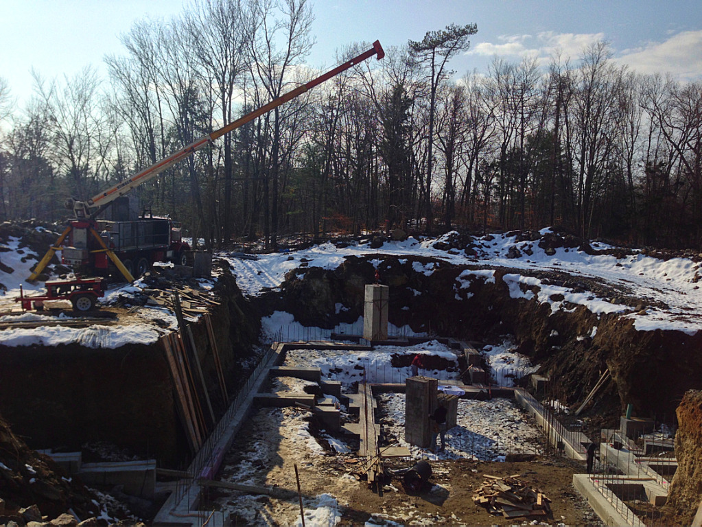 We pumped the footings yesterday and as we finished pouring the last truck it started to snow pretty heavy. We finished it up just in time with literally nothing to spare.
