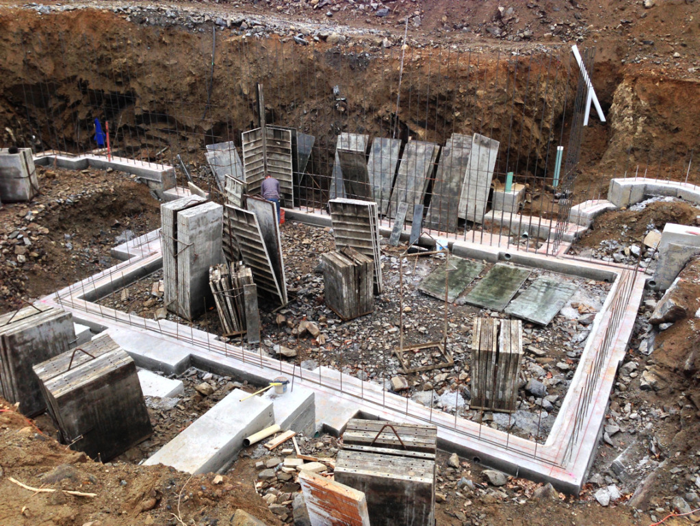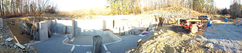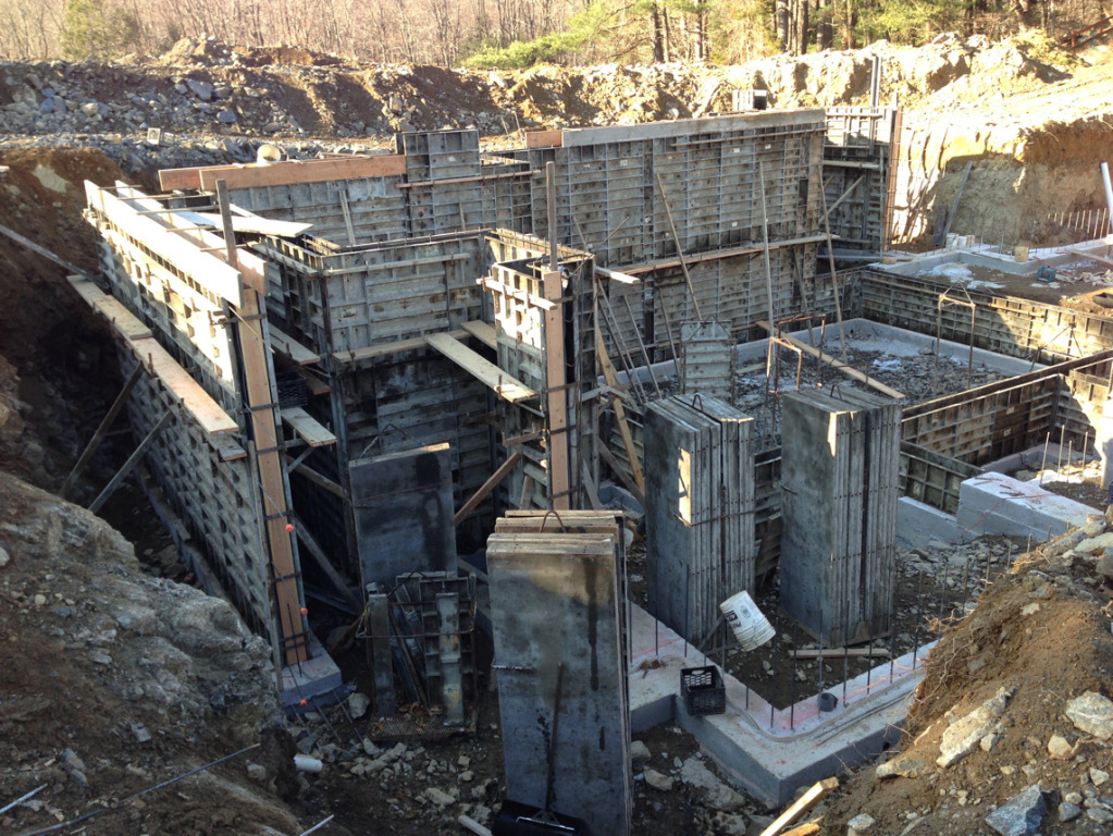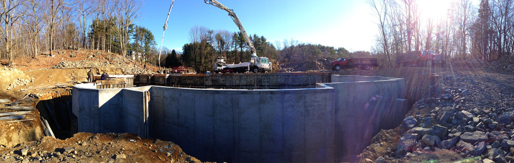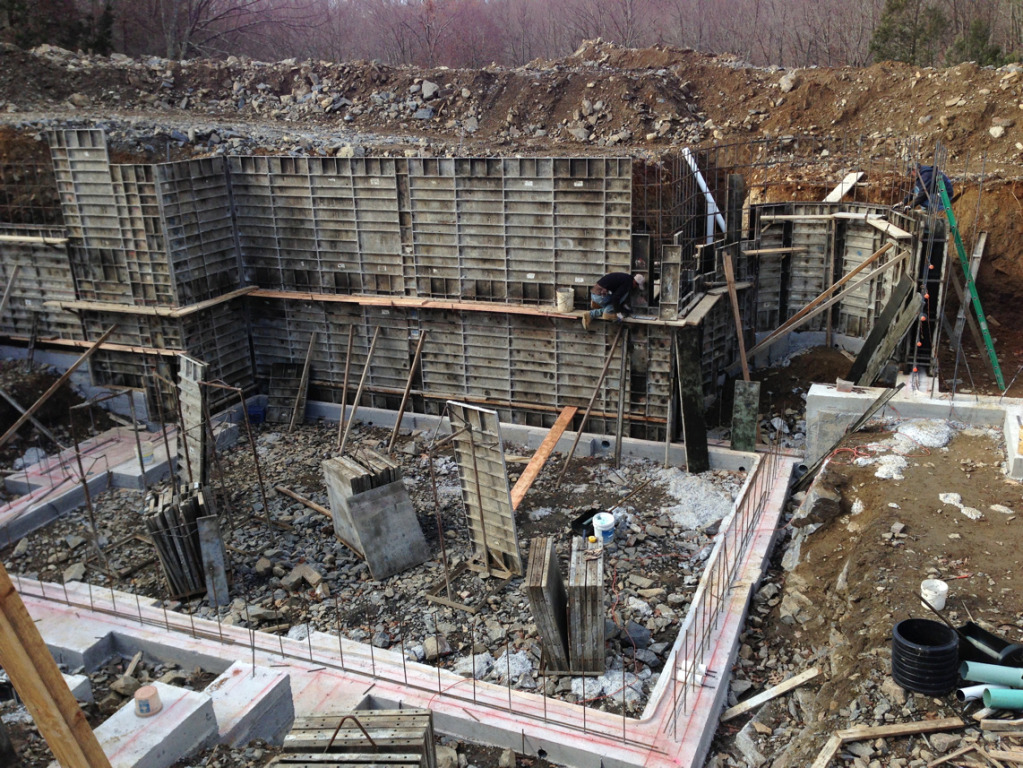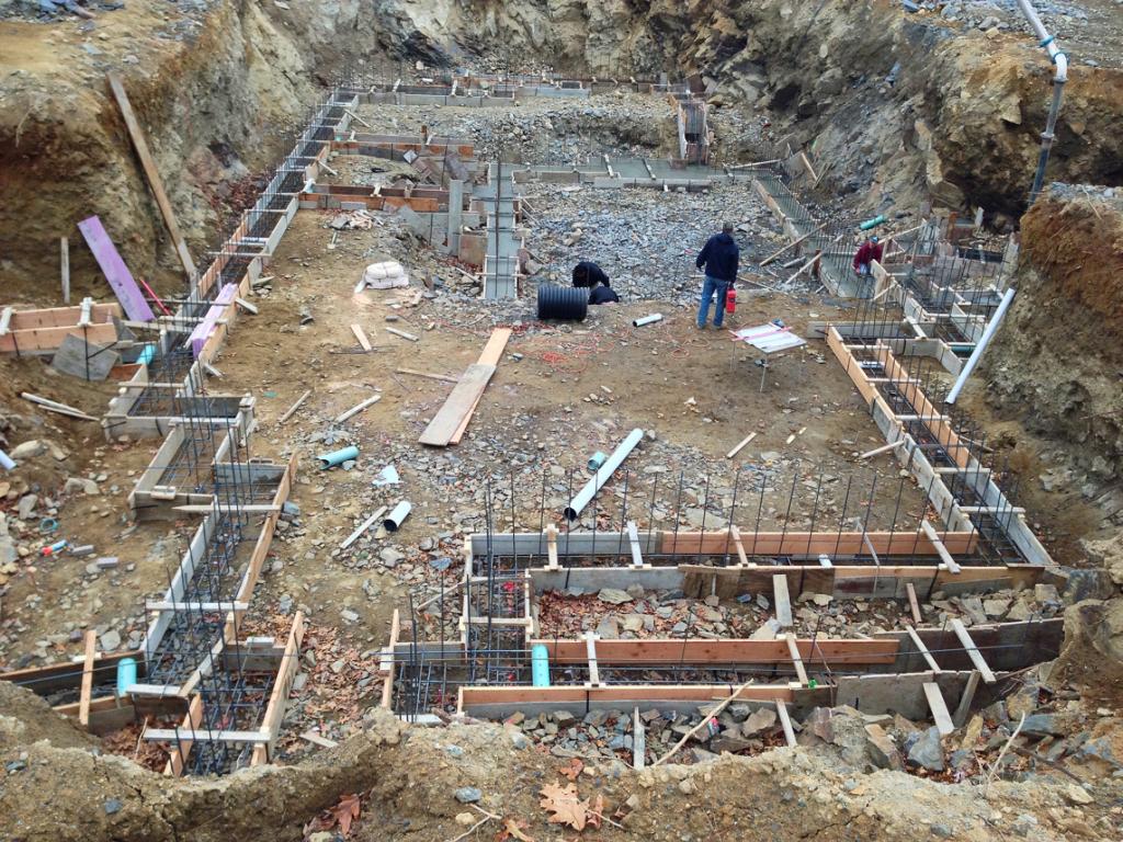 We pumped the footings yesterday and as we finished pouring the last truck it started to snow pretty heavy. We finished it up just in time with literally nothing to spare.