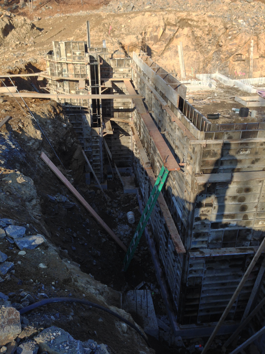 So much shoveling to get the broken forms off and new ones on, just me and one guy. We finished pouring the wall in the dark and needless to say we left a mess behind.