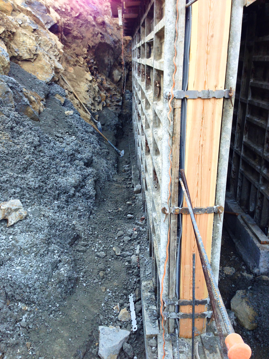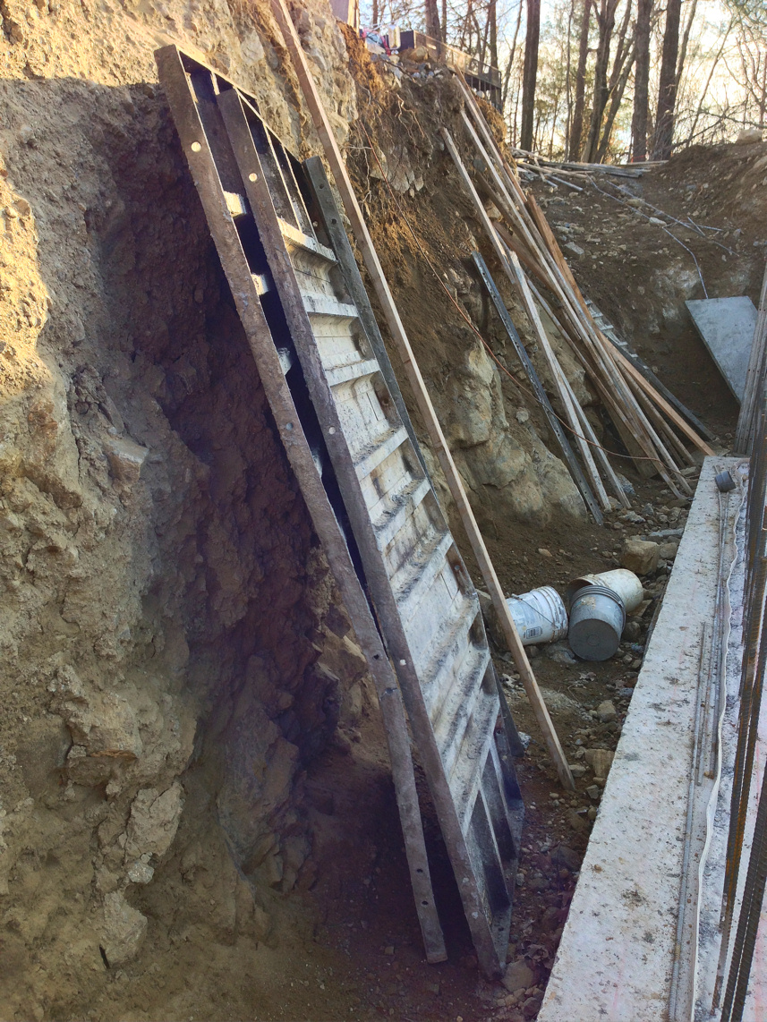 The next two days we switched on and off jackhammering a trench for the footing drains. So the already tight and scary banks got that much worse.