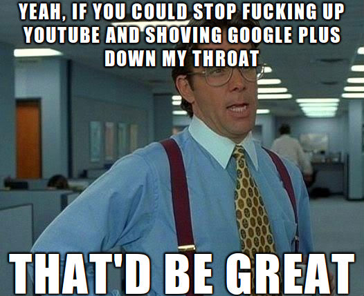 stupid as ****. Shocked google will let that one go. Like, why leave the link? it doesn't work, so might as well just remove it. Makes me think that the yt comments change was not tested, maybe Obama is running google now?