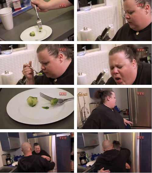 She needs to lay back on the biceps and the quads and build up the neglected calves to even things out.