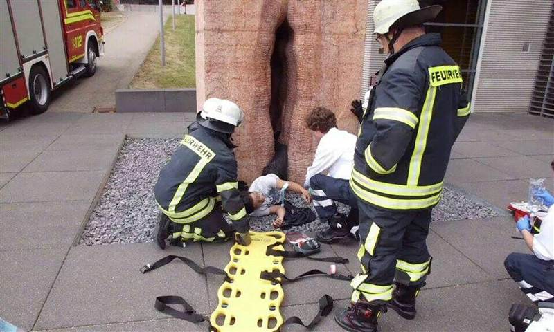 According to a German newspaper, Schwäbisches Tagblatt, emergency responders got a call mid-afternoon last Friday that someone was “stuck in a stone vulva.” To help, uh, deliver him from his predicament, 22 firemen and 5 firetrucks were sent to the unnamed student’s rescue. Luckily, the man was unharmed, as was the statue, a piece of art by the Peruvian artist Fernando de la Jara. Its name is “Chacan,” which means “making love” in a Peruvian Indian language. I am going to go out on a limb here and say that de la Jara probably didn’t intend for his sculpture to be used as a hidey-hole.
