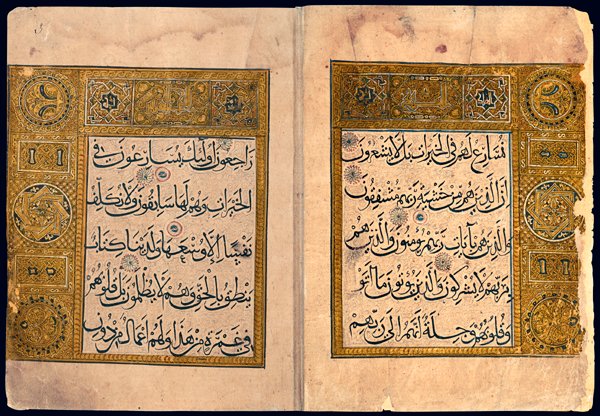 Illuminated page from the Qu'ran, copied by Osman b. Mohammad, illuminated by Ali b. Abd al-Rahman, ghaznavid period, Bost (Afghanistan), 1111-1112.