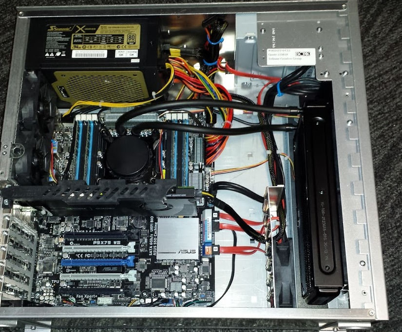 Got a new PC at work, finally. We recently decommissioned one of our realtime 3D previsualization suites, so I stole one of the workstations out of it for myself. Six core i7-3960X overclocked to 4.1 Ghz (it came this way, I'll probably turn it down to stock), 16GB, Nvidia Quadro 4000 video card, a bunch of storage, blah blah blah. It's kind of fast-ish.