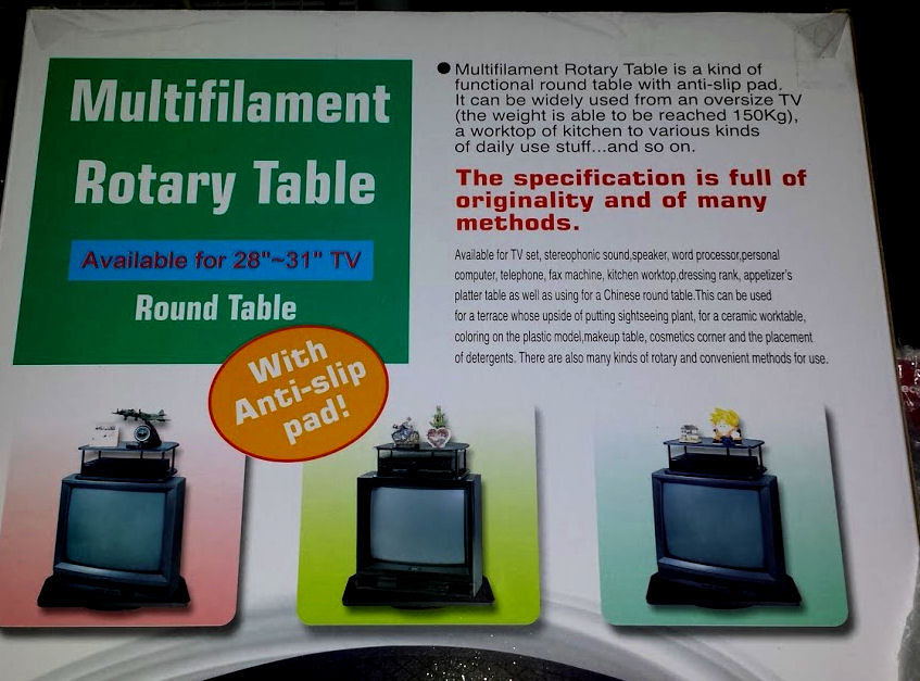 Oh, and the rotating base I ordered for the LED TV arrived. The specification is full of originality and of many methods: