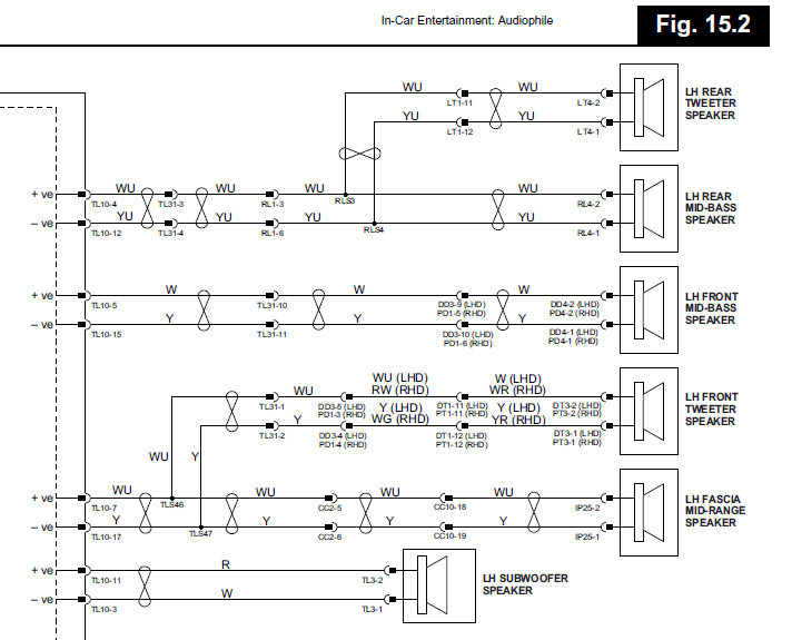 Attached is a part of a wiring diagram for my Jag's audio system. The little squares with the parenthesis after them I'm guessing represent connectors, correct? But what about the infinity/figure 8s that link the + and - sides of the circuits? What the hell do those mean?