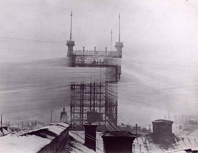 Here is a New Haven train running in overhead mode. The third-rail shoes are also visible near the bottom of each car: