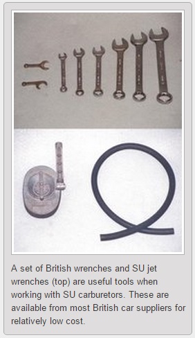 I remember those back when I worked in a British car restoration shop. We had a full set of Whitworth spanners and sockets there. That carburetor kit is missing the S.U. jet centering tool and the dashpot piston height indicators. Newer S.U. carbs have a "swinging" needle and did not require the jet to be centered. Some people don't know how to use the rubber hose. Hint: "Listen to the hiss".