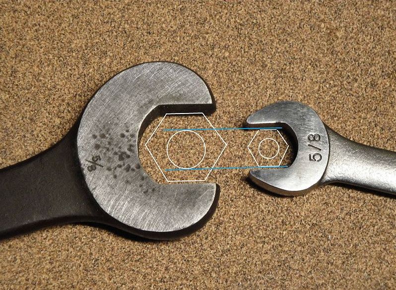 Both of these wrenches are 5/8". The one on the right is actually 5/8", the one on the left is Whitworth 5/8".