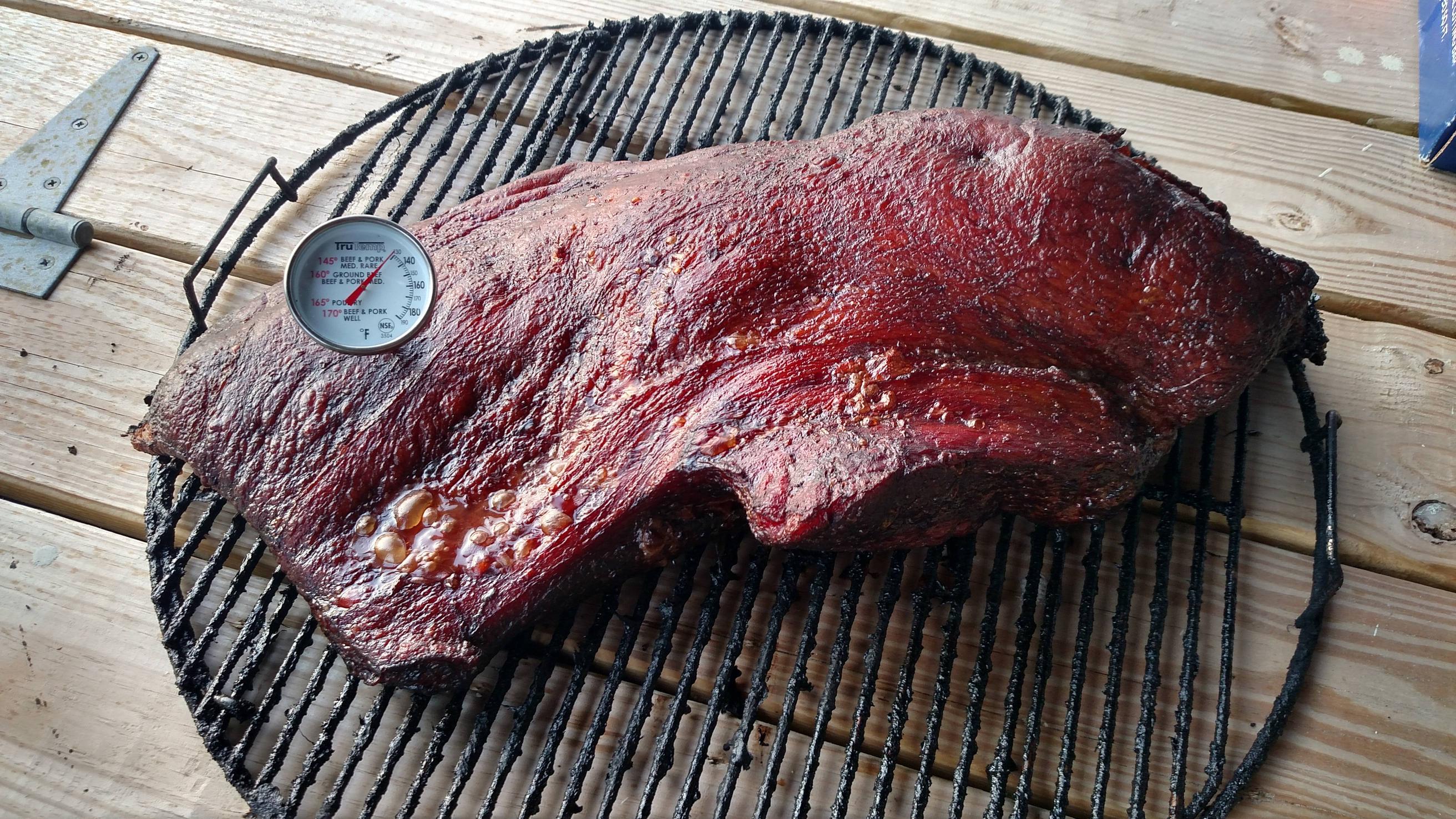 Right now the brisket is at about 9 hours on the smoker. I just wrapped it in tin foil and put it back on the smoker. I will pull it a bit later this afternoon.