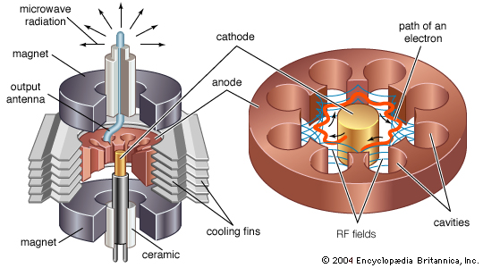 A microwave oven will output a kilowatt or more, and when the magnetron is removed from its housing, they're pretty omnidirectional.
