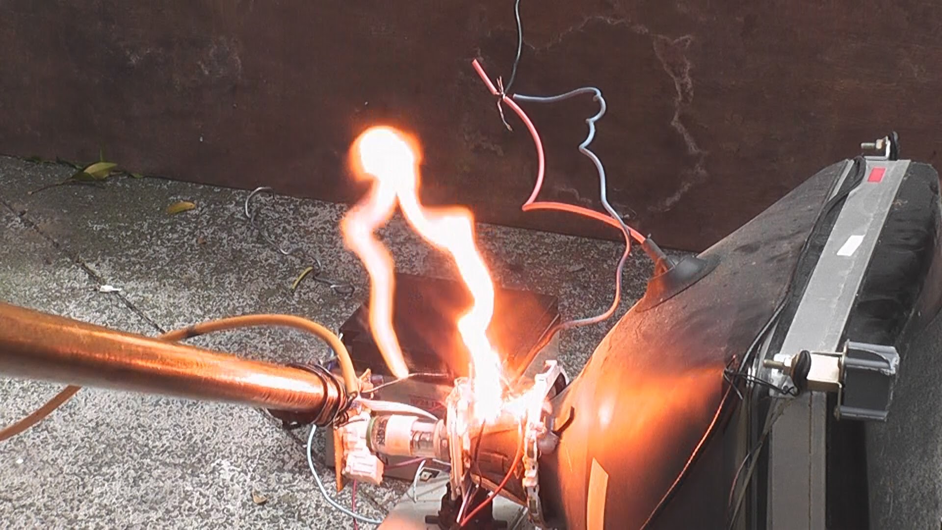 I tried to use a CRT flyback, but it wasn't quite enough current to maintain the arc, so I tried two CRT flybacks in series.
