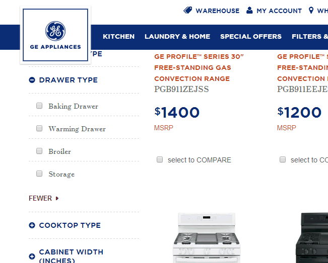 I went to GE's website and did some research on freestanding gas ranges. There are four drawer options to choose from: