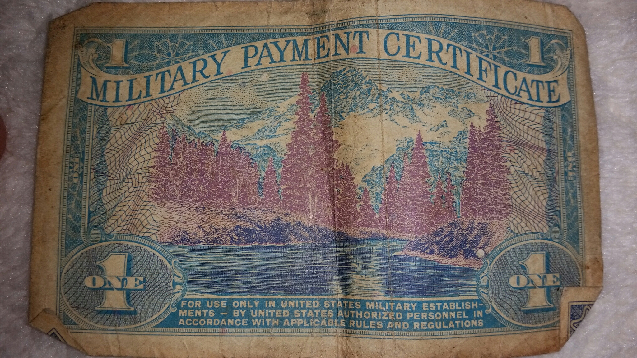Those are military "chits". Used to pay soldiers in liberated countries during and occupied countries after World War II. Because US dollars would have messed up the economies of the war-torn nations, they issued those chits that were only good in the local PX. Also issued to soldiers in Korea to spend in Japan/Okinawa, I believe. No longer used.
