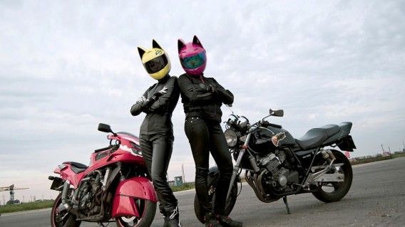 Several years ago, I (briefly) dated a woman who, aside from the cat helmet, rode an SV-650 wearing gear which was extremely similar to the lady above, heels and all.