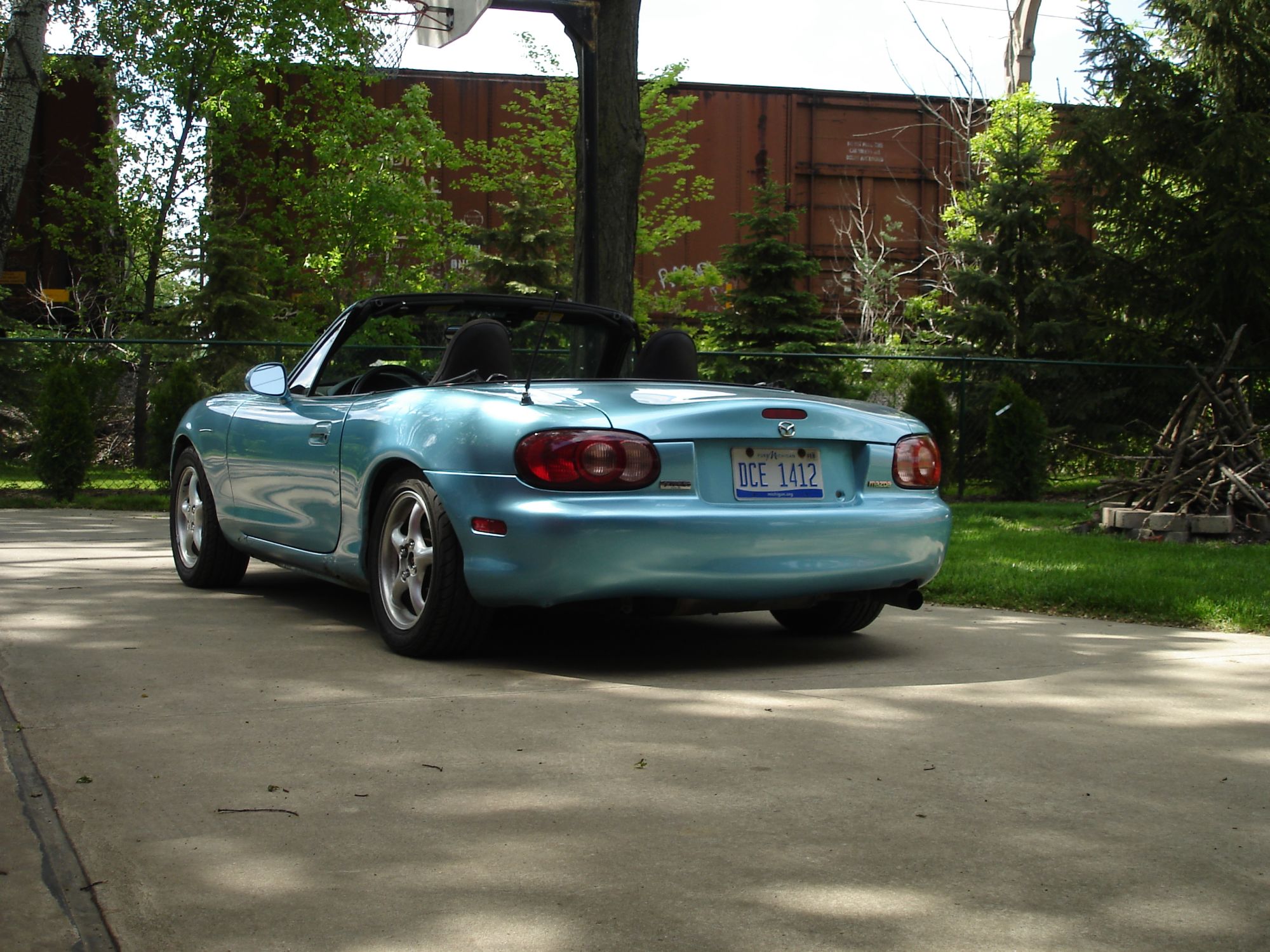 It turns out a stock NB1 Miata can handle right around 600lbs (plus a full tank of gas plus my 150lb ***) before she sets down on the bump stops.