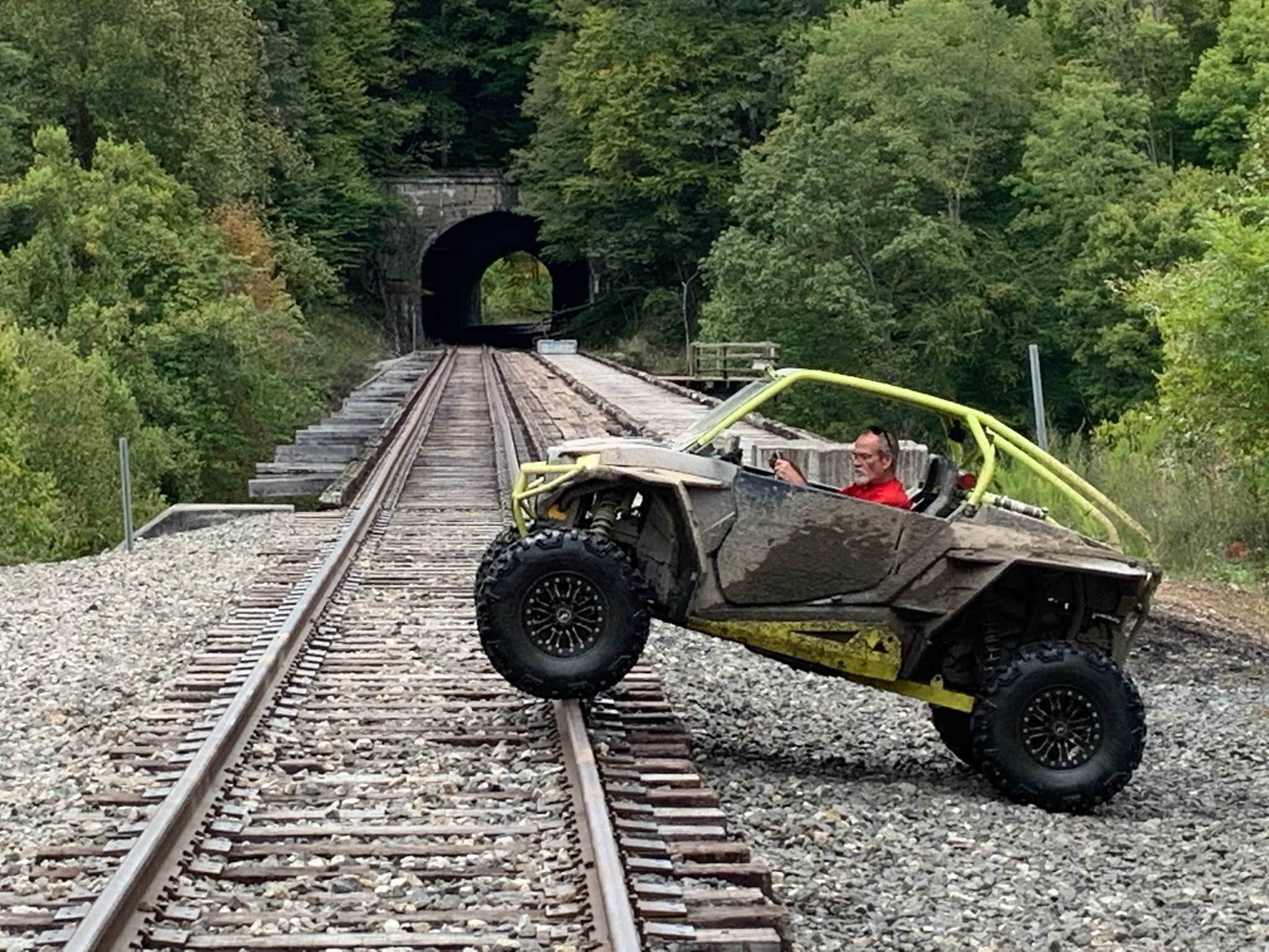The staging area was just under a mile away from the tunnel, next to a roundabout. We pulled in there.