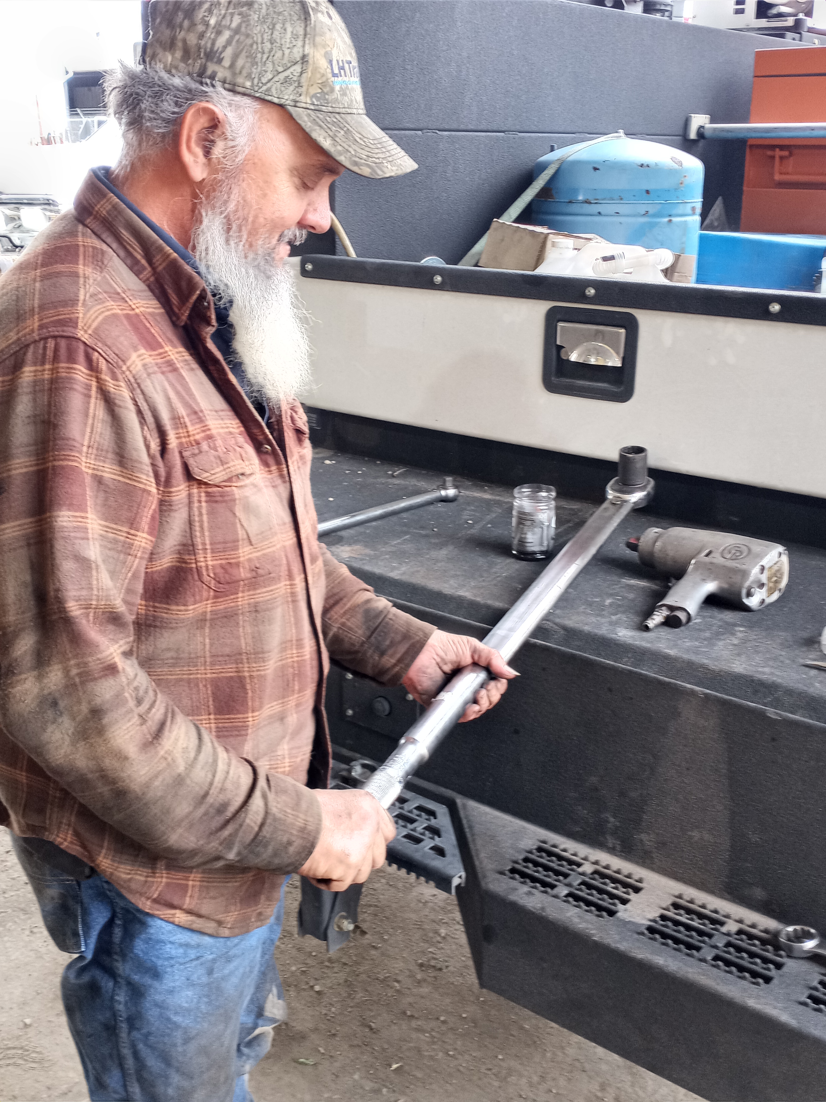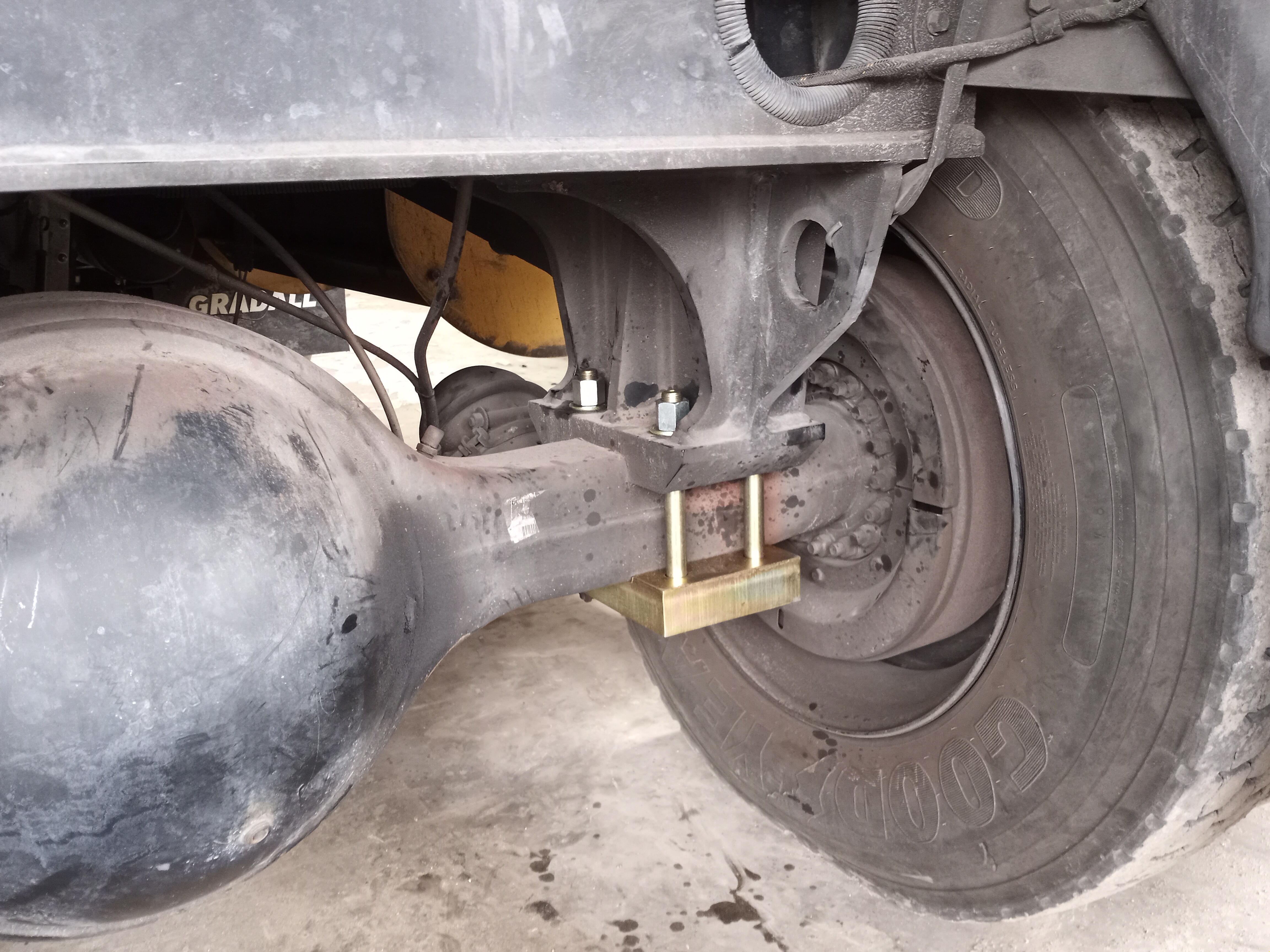 The front axle is sprung on leaf springs but it doesn't have shocks up there. It has hydraulic cylinders and valves that lock the flow in and out of them when not traveling to increase stability when working over the side.
