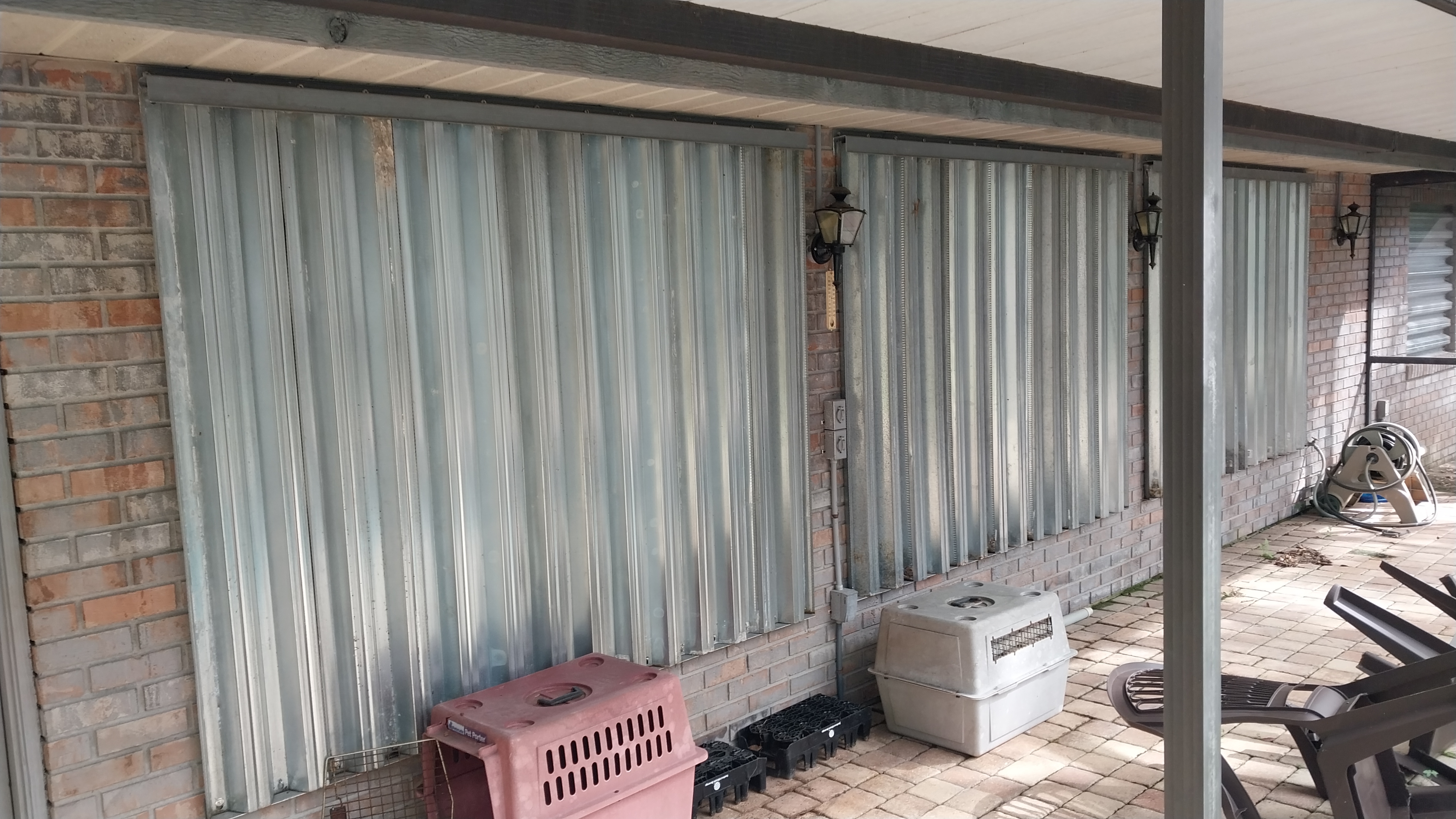 Put the metal shutters up at my parents' house.
