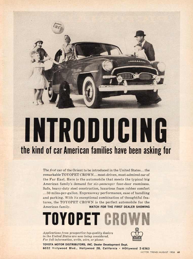 I'm having a hard time accepting the 30 MPG claim on that Toyota. Was it customary for that measurement to be taken while in free-fall from low earth orbit in 1958?