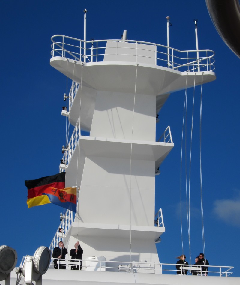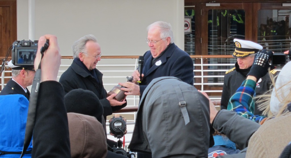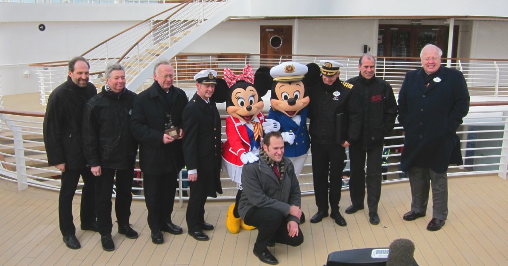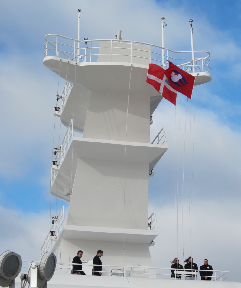 And it's official. The German and Meyer Werft flags have been lowered, the Bronze Rodent has been handed over, the Bahamian and Disney flags have been raised, and we are now part of the fleet! There was much pomp.