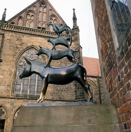 On a related note, here is a bronze statue of a chicken standing on a cat standing on a dog standing on a mule, just outside a very old church:
