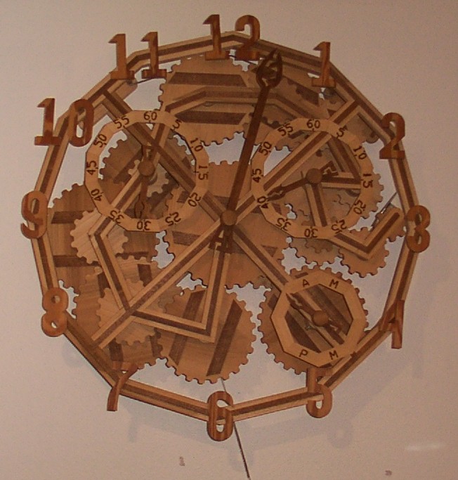 I've been accused of having too much time on my hands. Though in college, a friend of mine named Joe Brown built a 6 foot wide clock completely out of wood, gears and all. He designed these on paper and cut everything by hand using only a bandsaw. No CNC, no Solidworks.